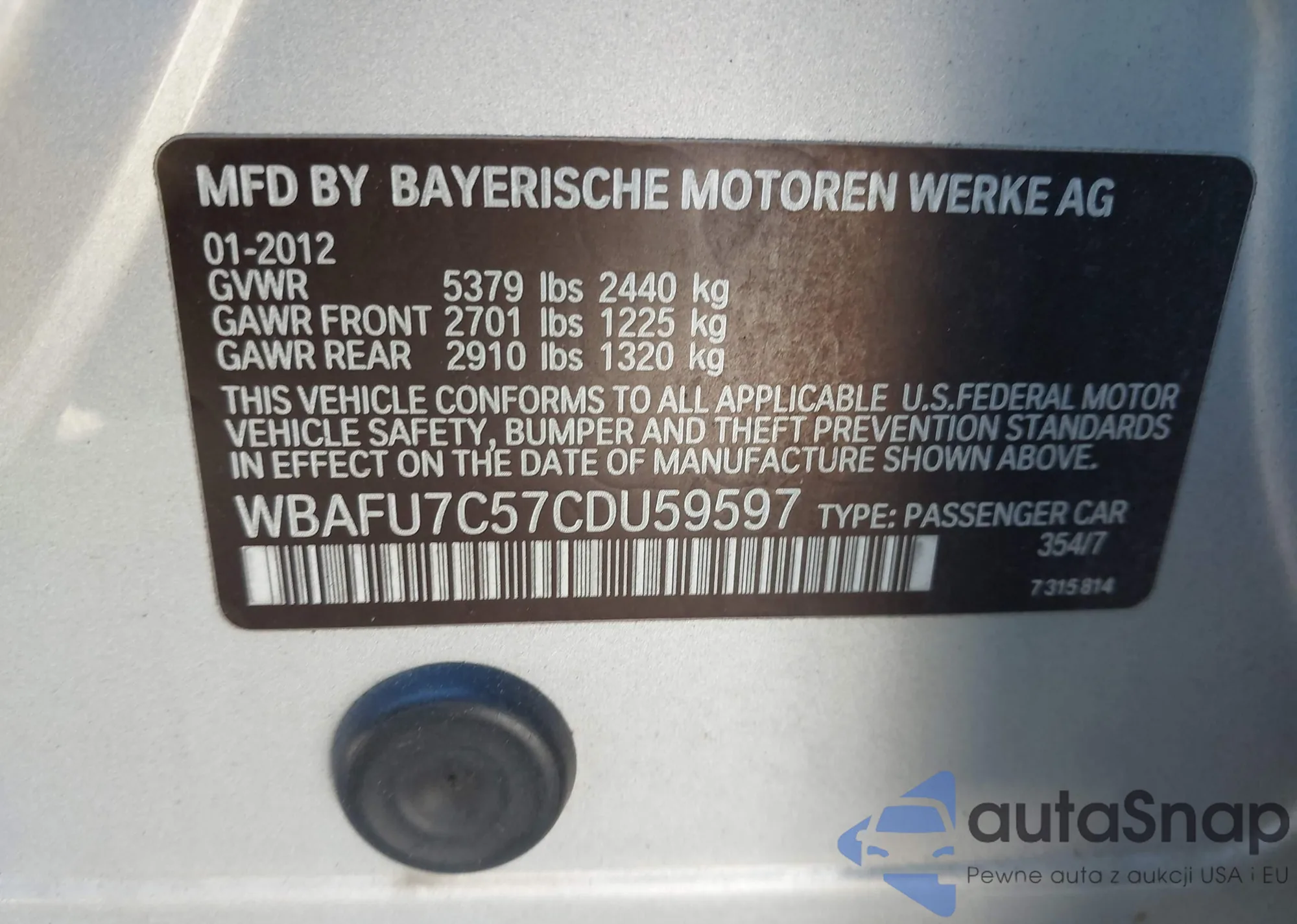 • VIN WBAFU7C57CDU59597