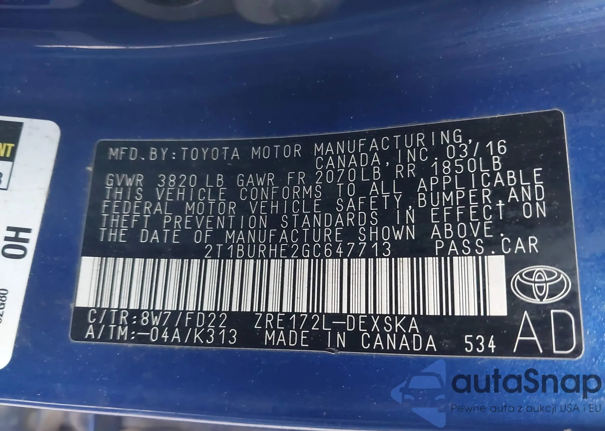 • VIN 2T1BURHE2GC647713