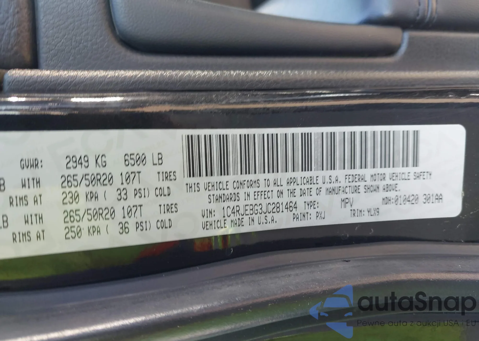 LOT: 43379257 VIN: 1C4RJEBG3JC281464
