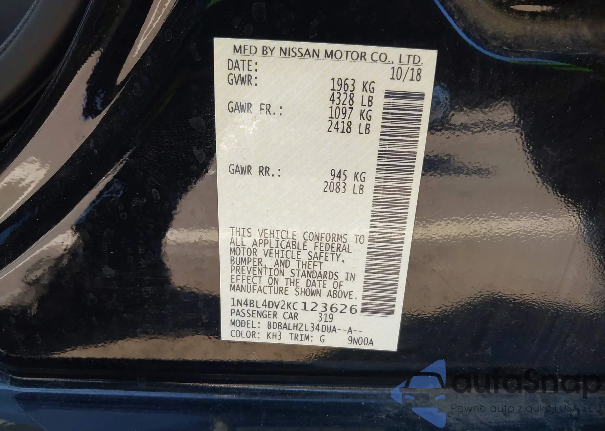 LOT: 43418330 VIN: 1N4BL4DV2KC123626