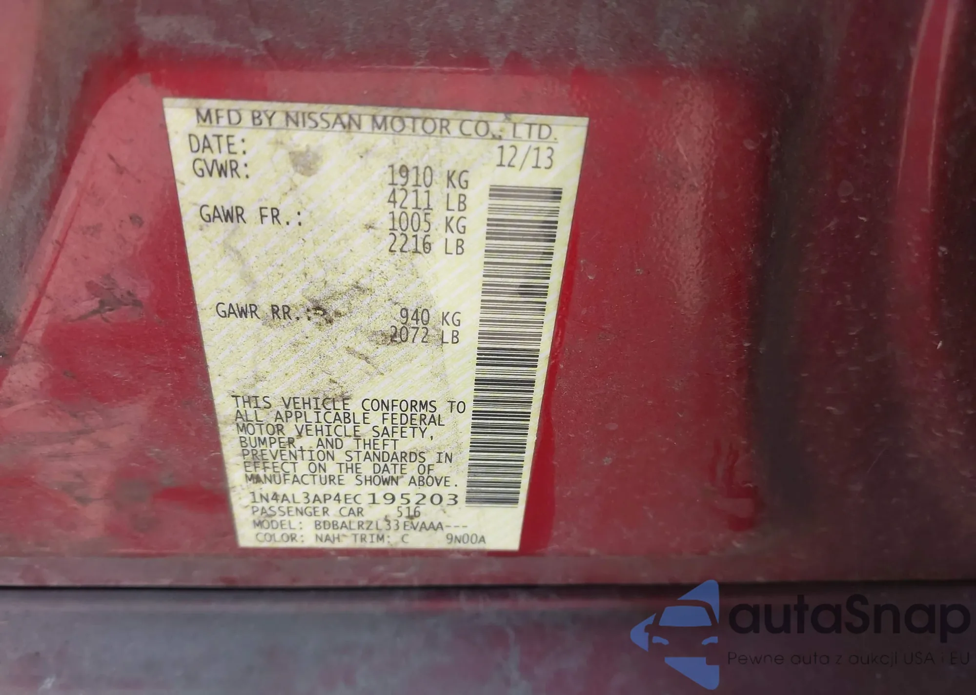 LOT: 43246002 VIN: 1N4AL3AP4ET195203