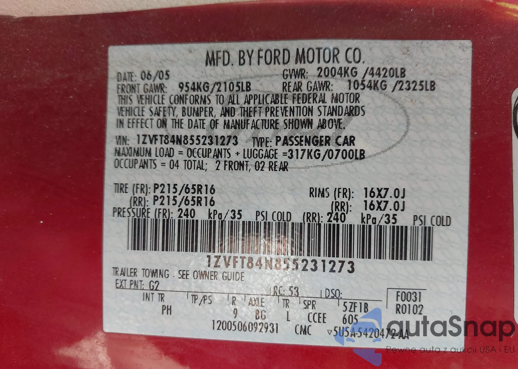 • VIN 1FAHP2MK0GG116053