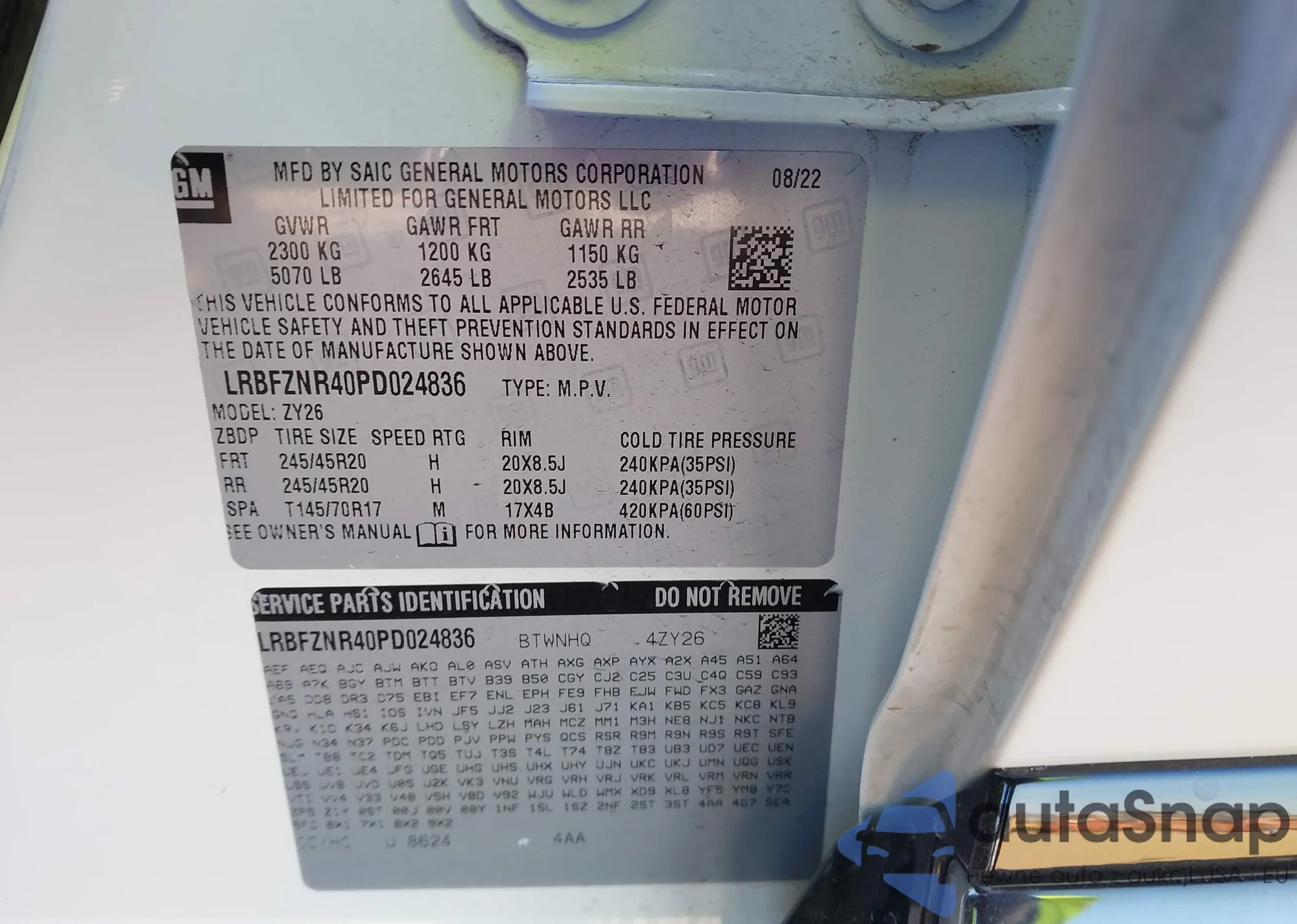 • VIN KL8CB6SAXMC221523