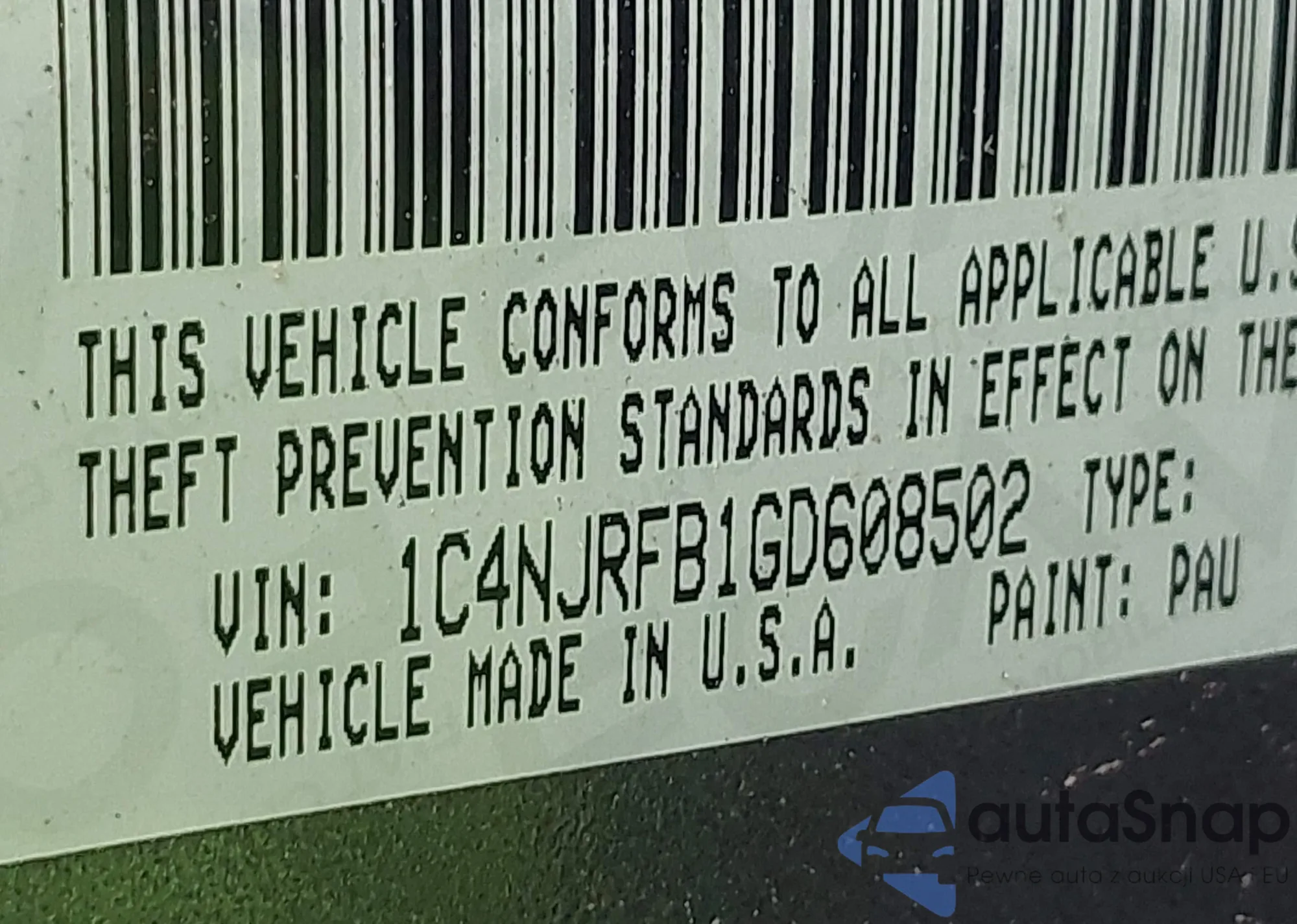 • VIN 1C4NJRFB1GD608502