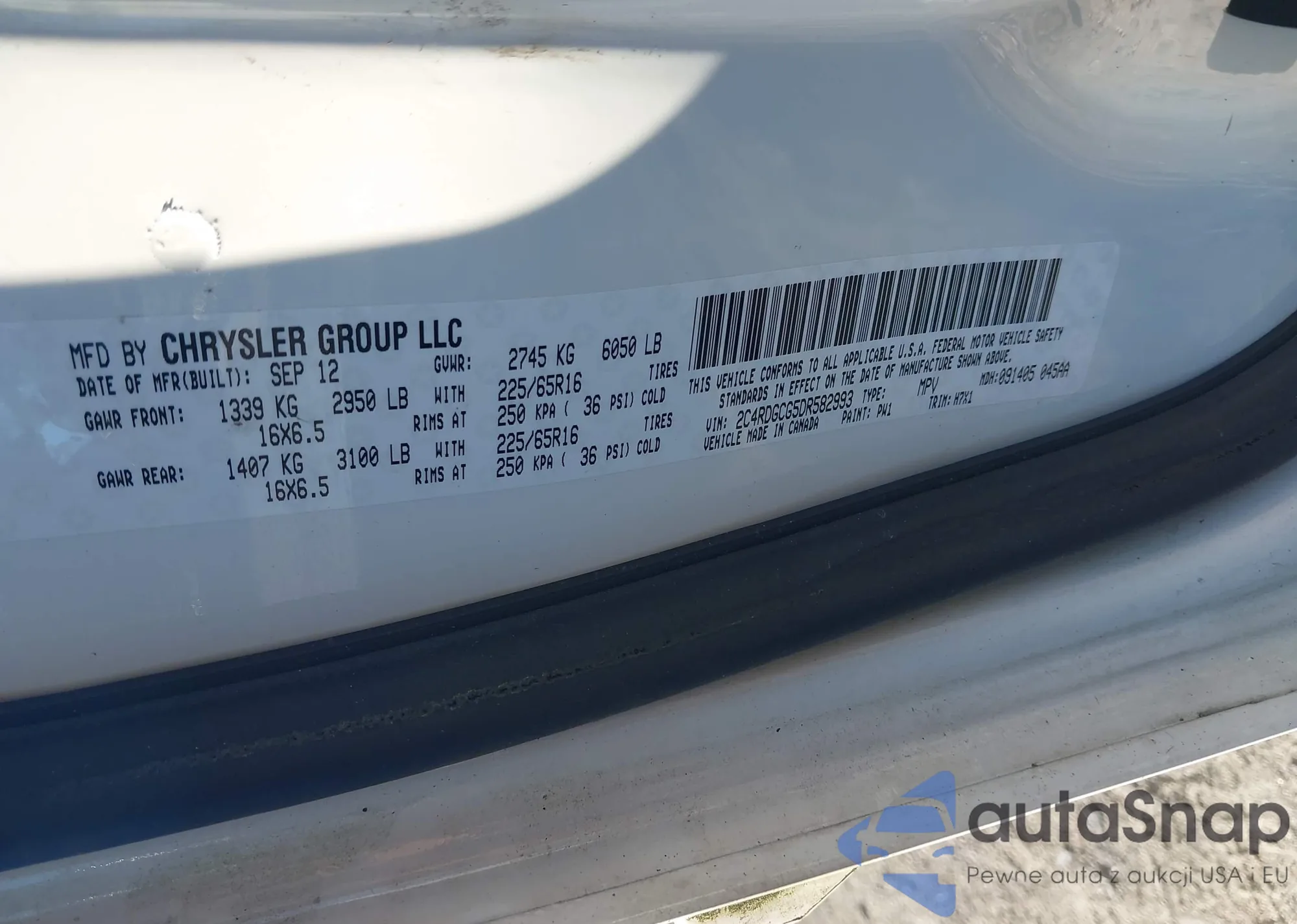 LOT: 43579044 VIN: 2C4RDGCG5DR582993