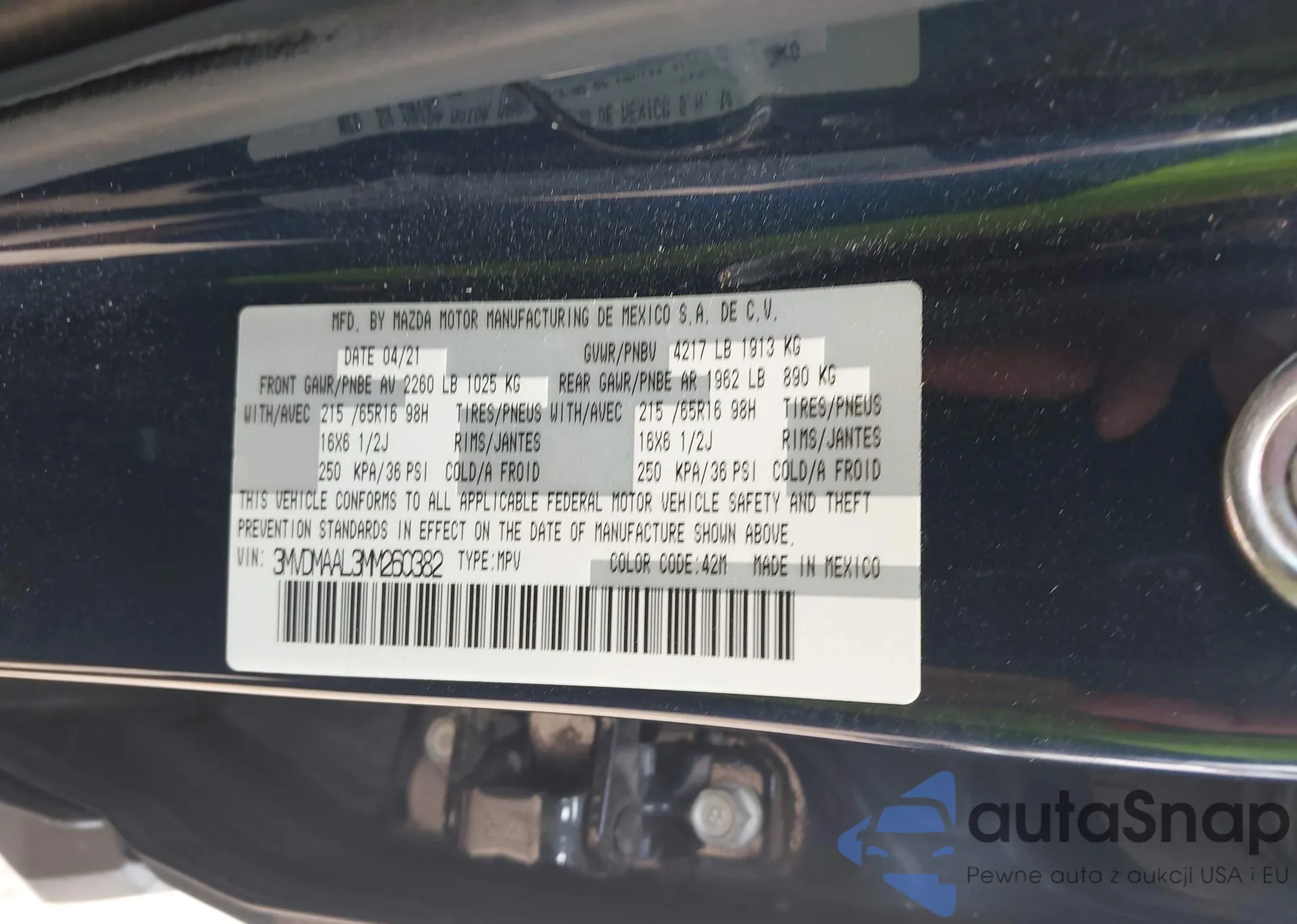 LOT: 43345138 VIN: 3MVDMAAL3MM260382