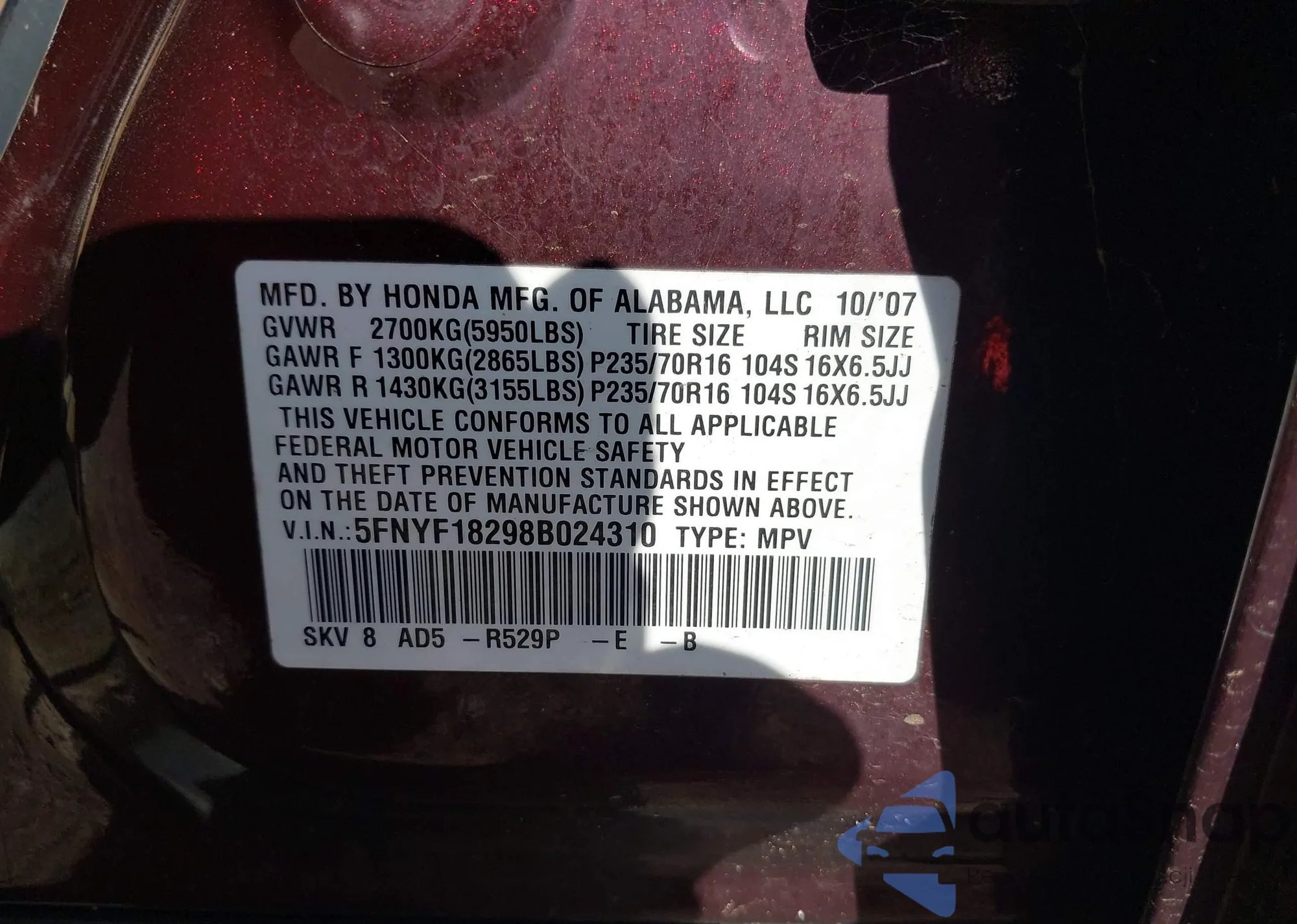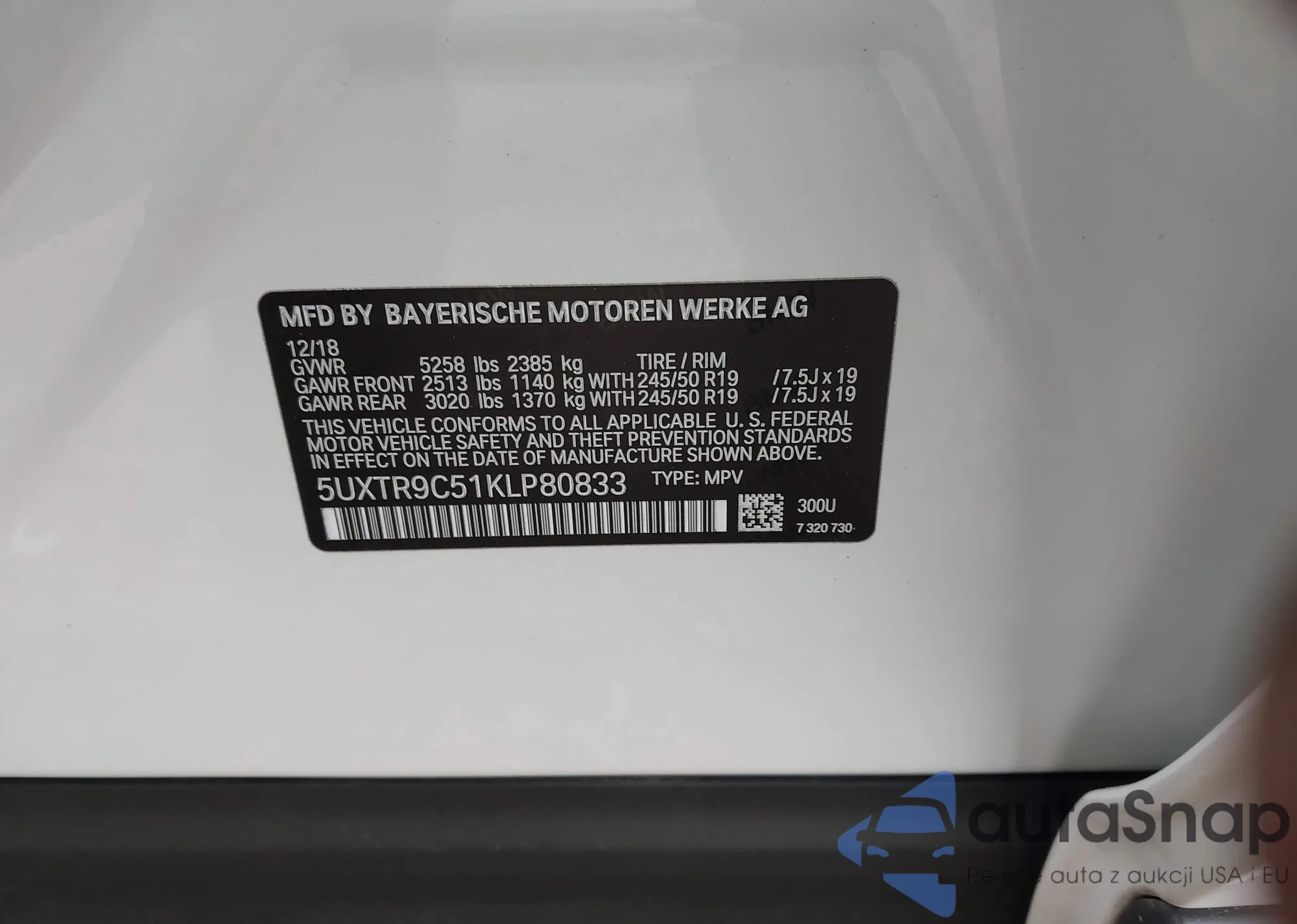 • VIN 5UXTR9C51KLP80833