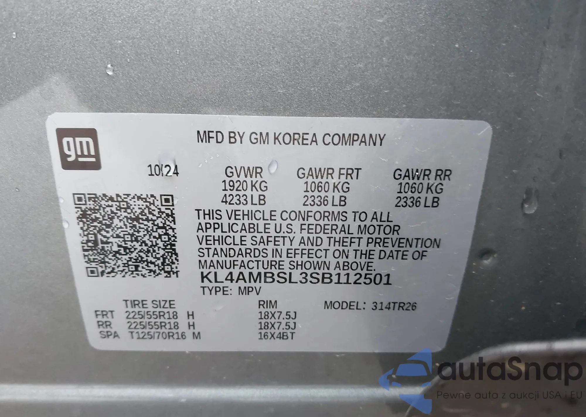 LOT: 42889098 VIN: KL4AMBSL3SB112501