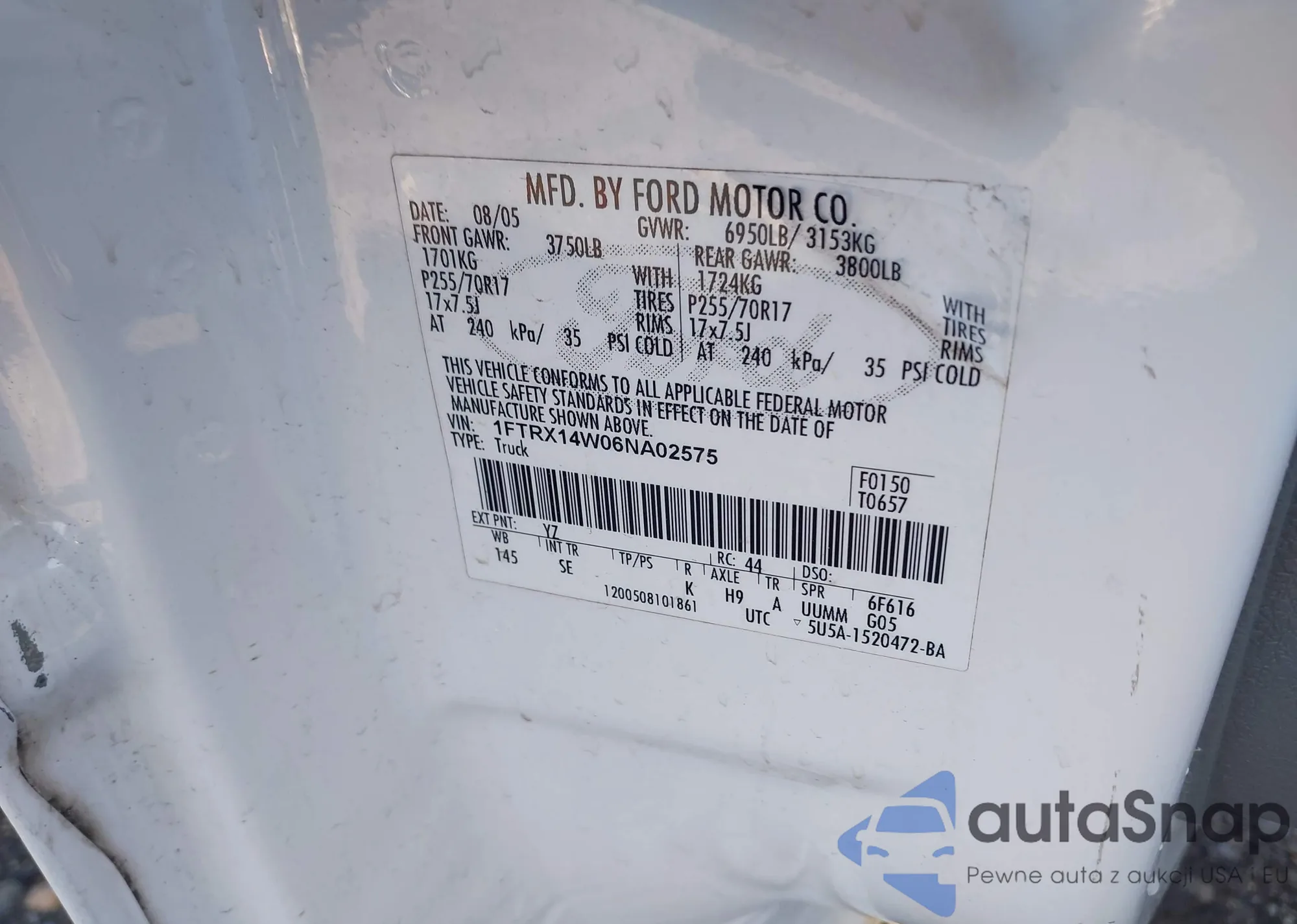 • VIN 1FTRX14W06NA02575