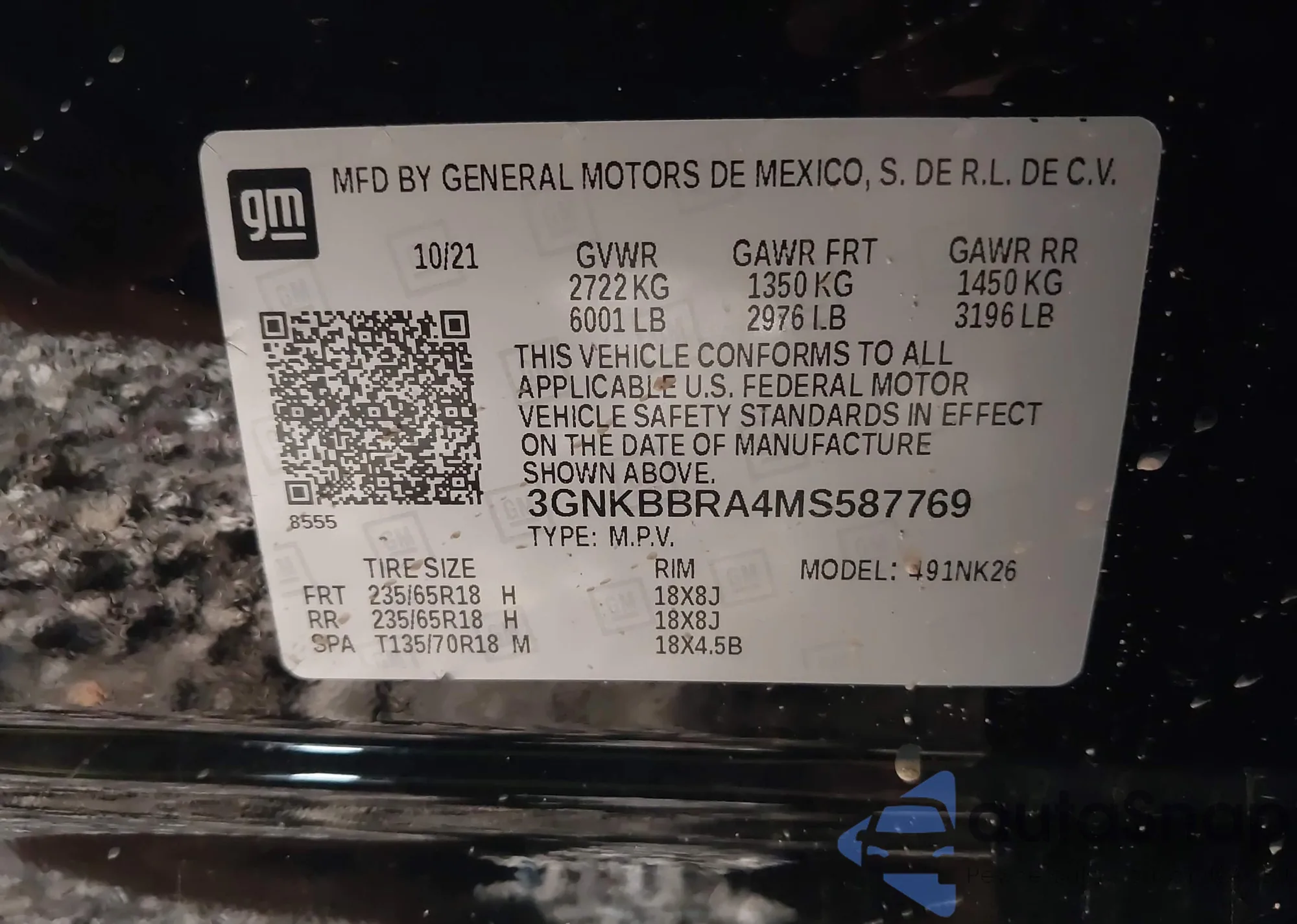 • VIN 3GNKBBRA4MS587769