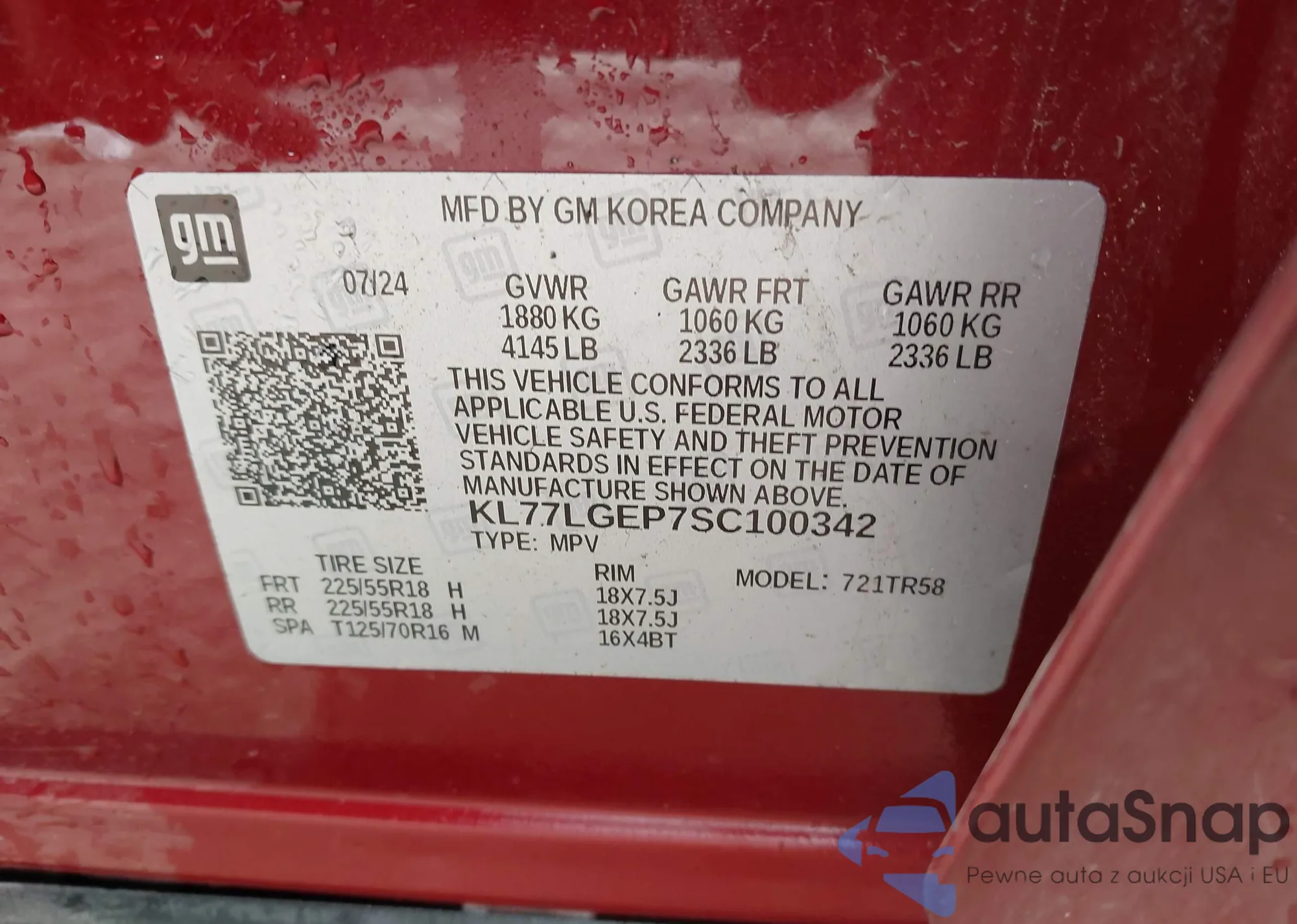 • VIN KL77LGEP7SC100342