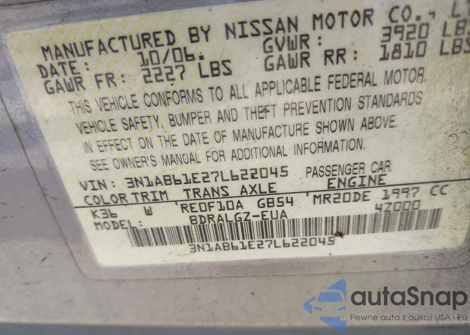 • VIN 1N4AL3AP0HC233191