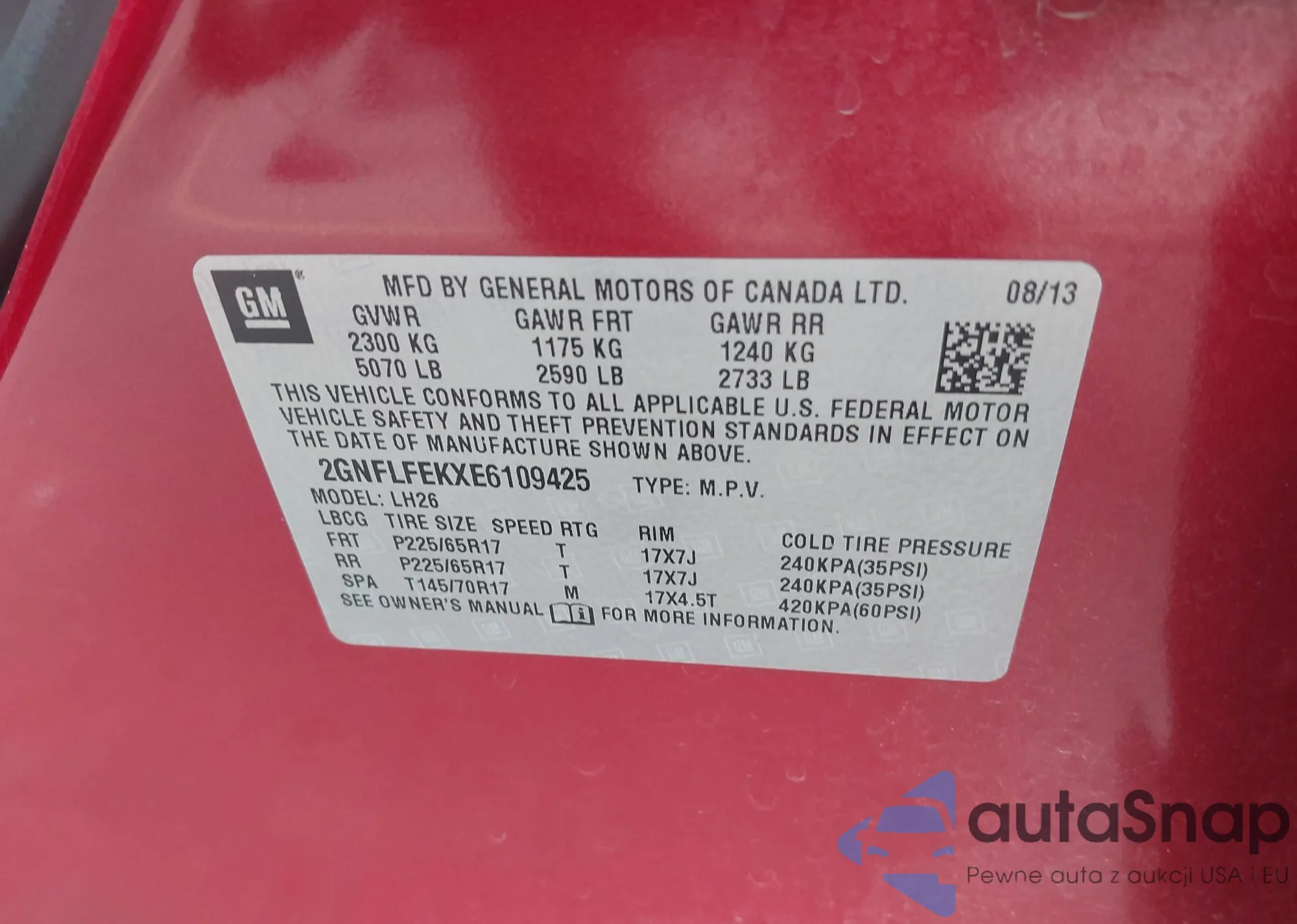 • VIN 2GNFLFEKXE6109425