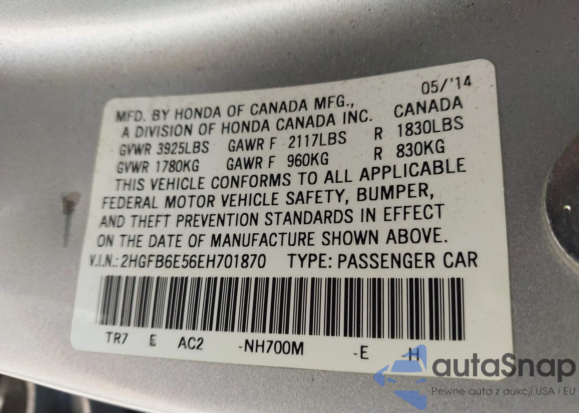 • VIN 2HGFB6E56EH701870
