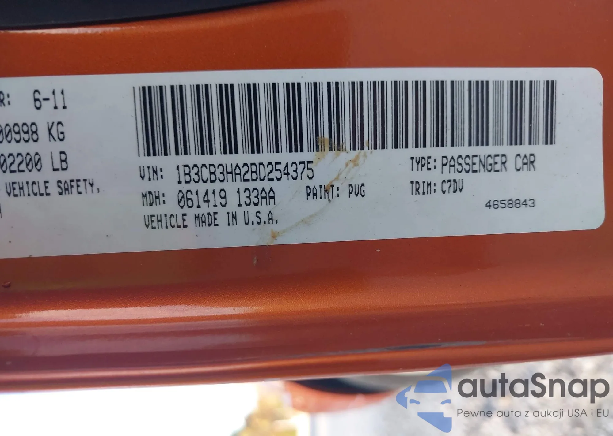 LOT: 43612267 VIN: 1B3CB3HA2BD254375