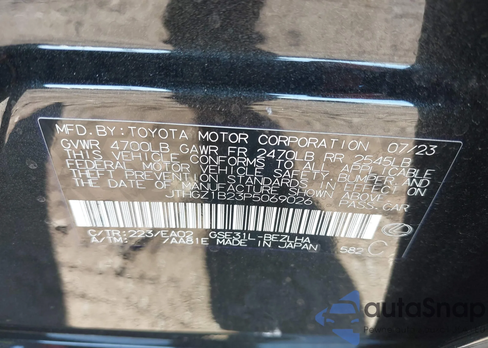 • VIN 4T1BZ1HK2KU023765
