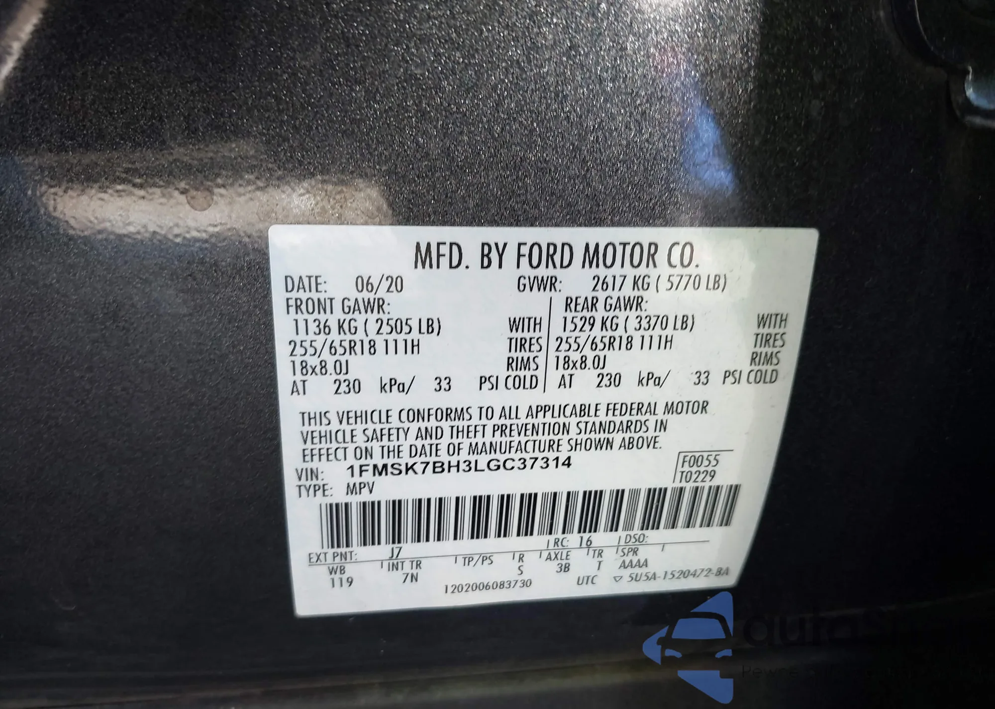 • VIN 1FMSK7BH3LGC37314