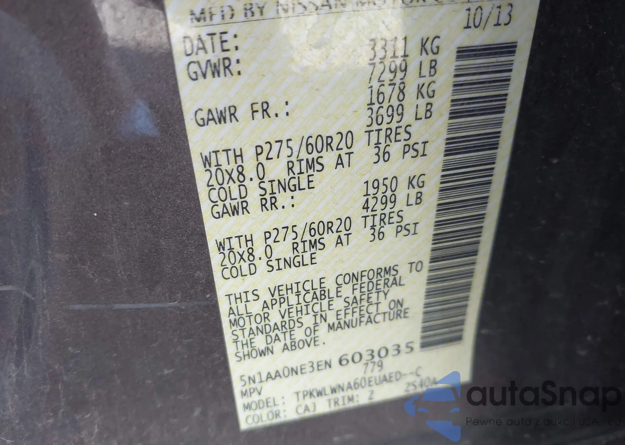 • VIN 5N1AA0NE3EN603035