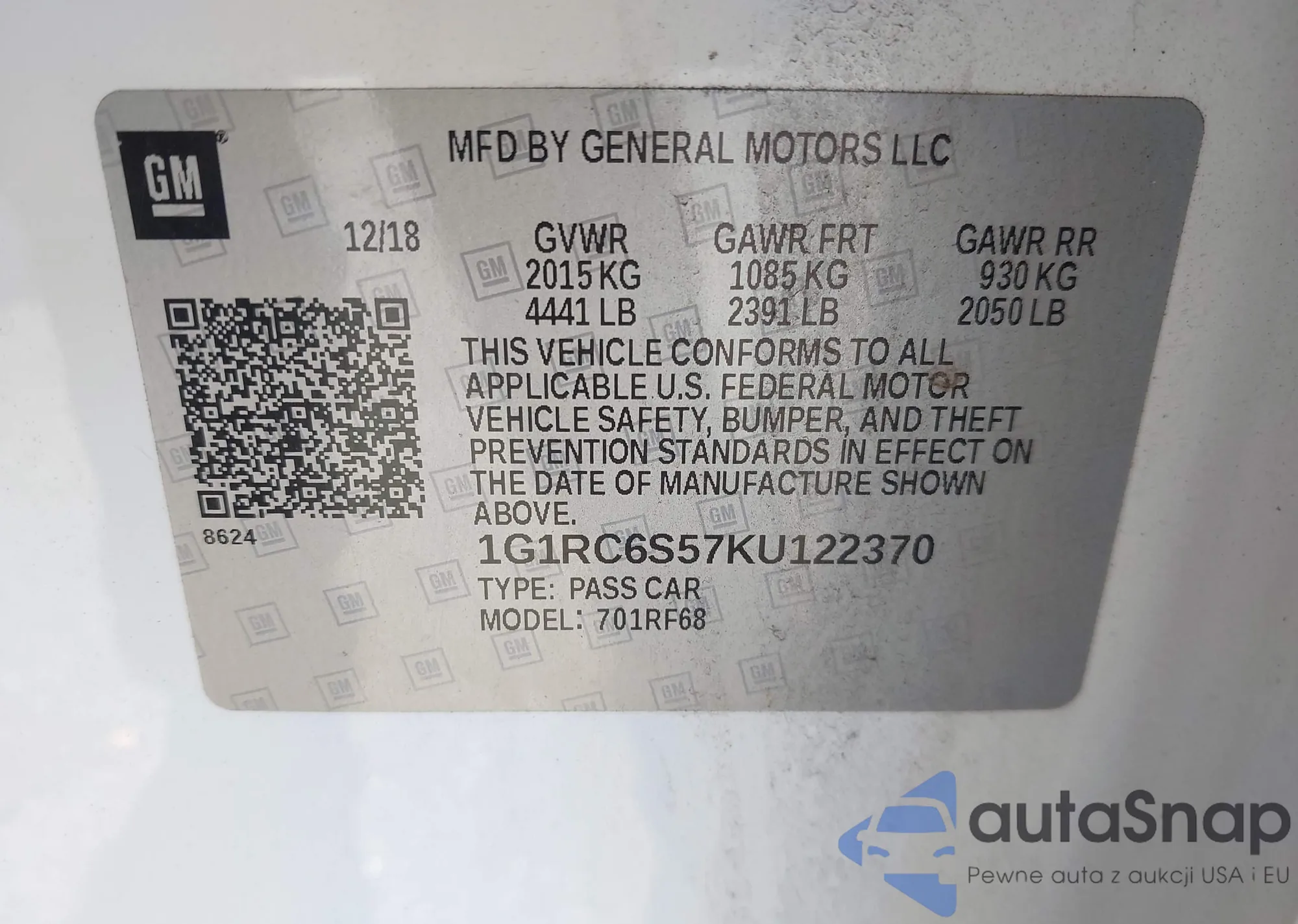 • VIN 1G1RC6S57KU122370