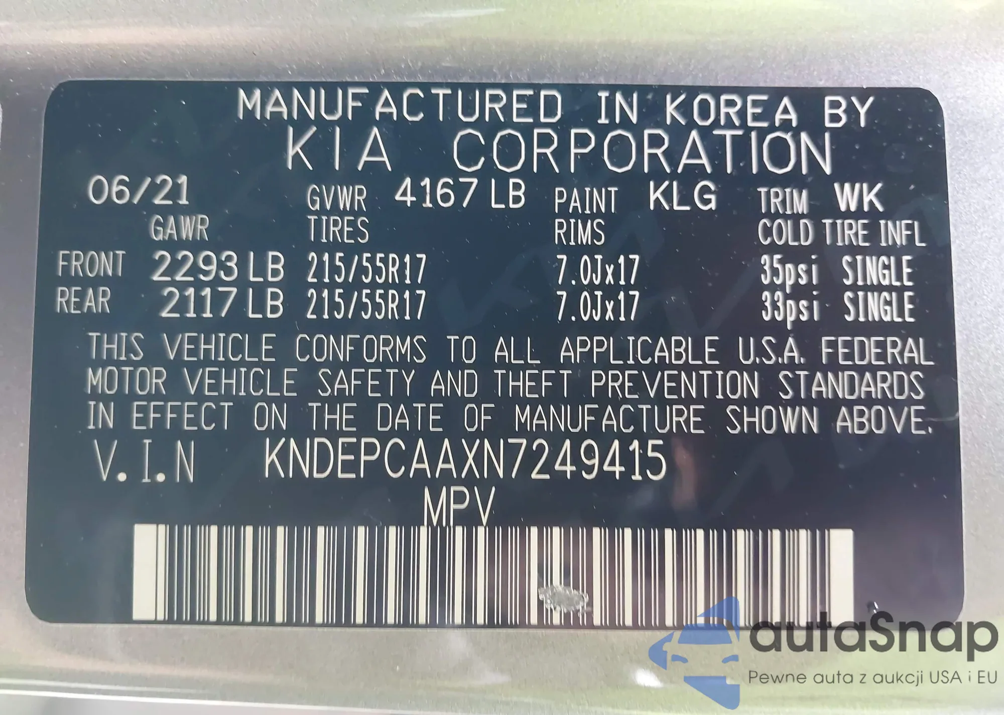 LOT: 43419064 VIN: KNDEPCAAXN7249415