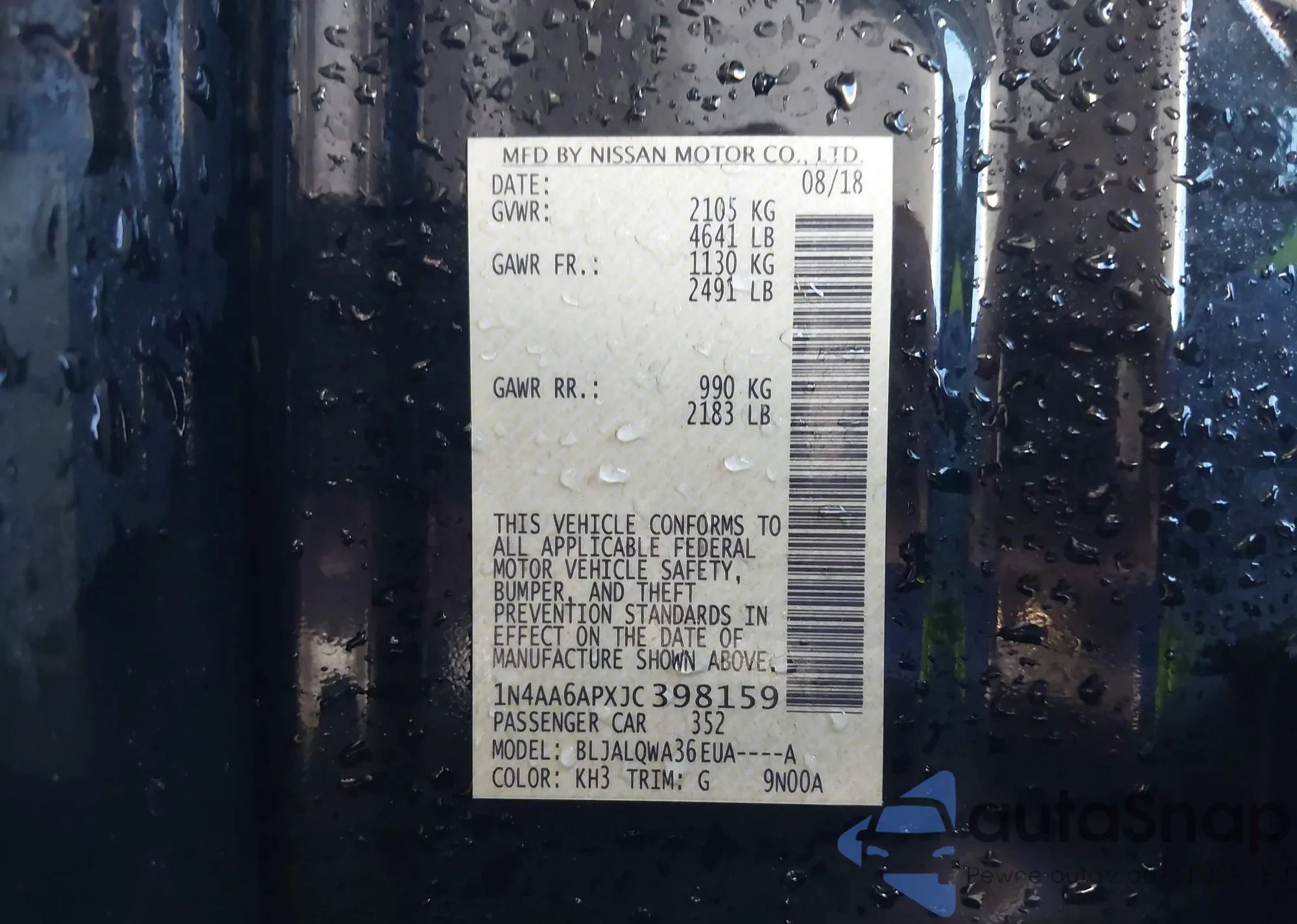 LOT: 43380207 VIN: 5N1BT3BB6PC866466