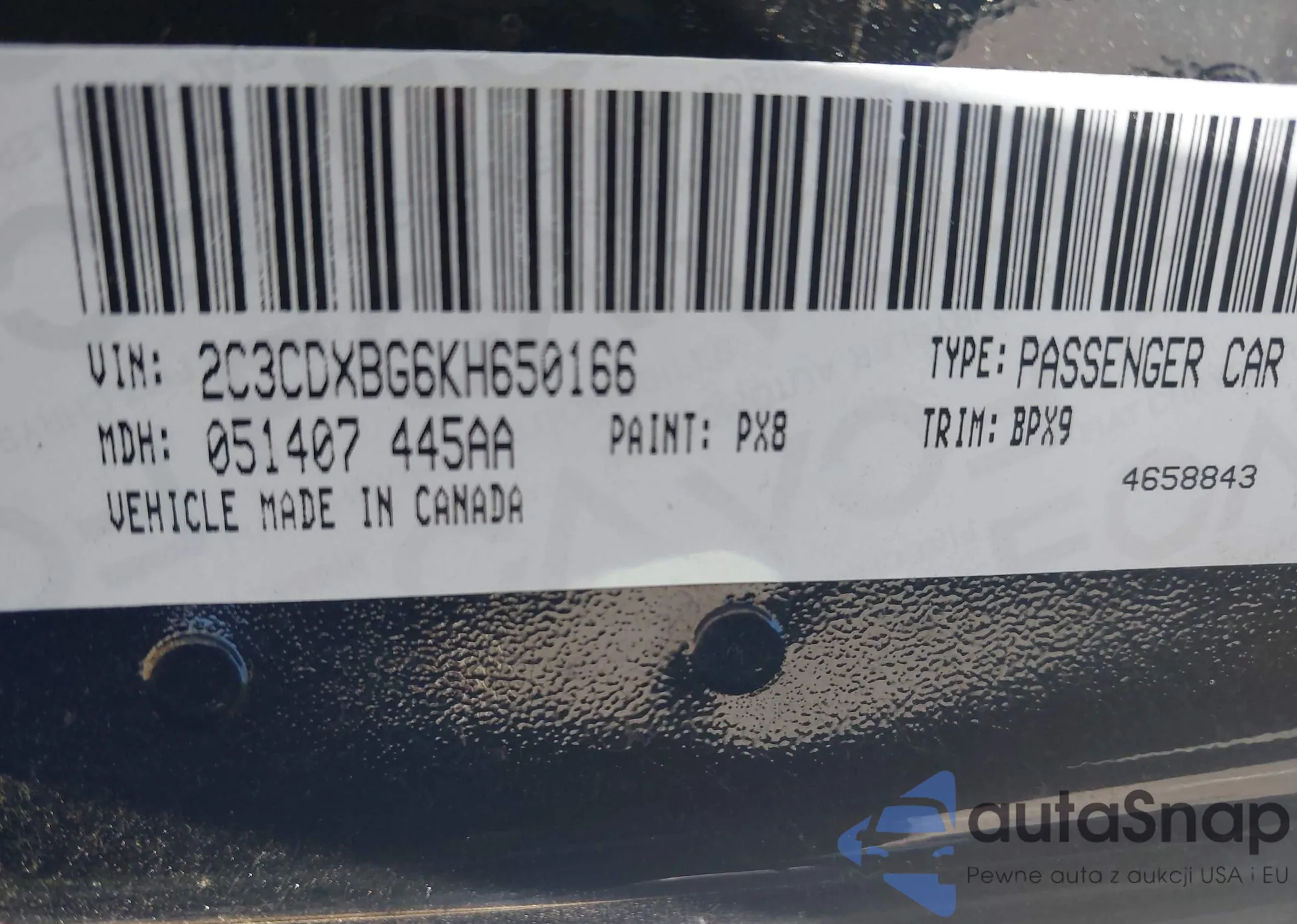 LOT: 43170475 VIN: 2C3CDXBG6KH650166