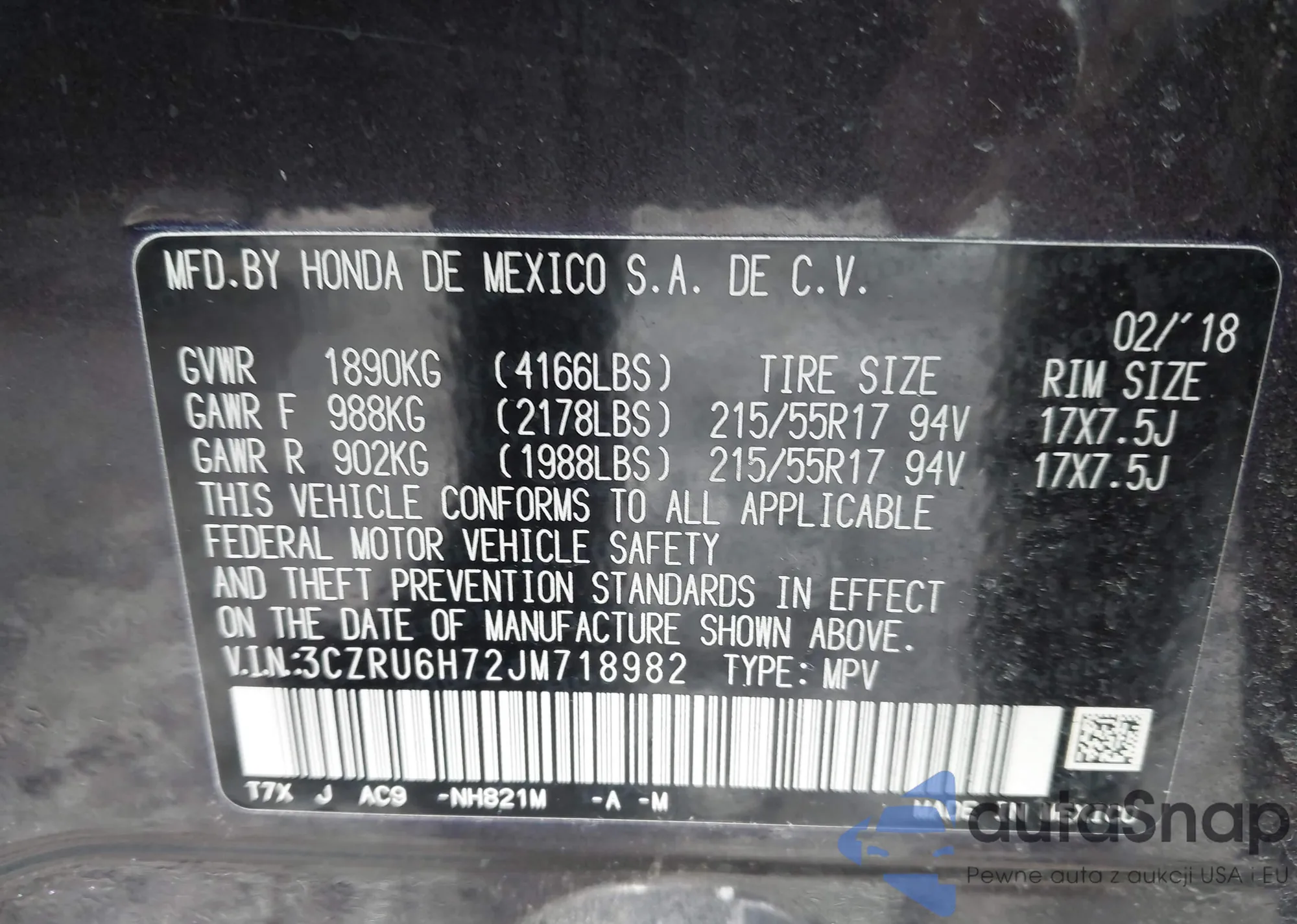 • VIN 2HKRM4H56CH632320