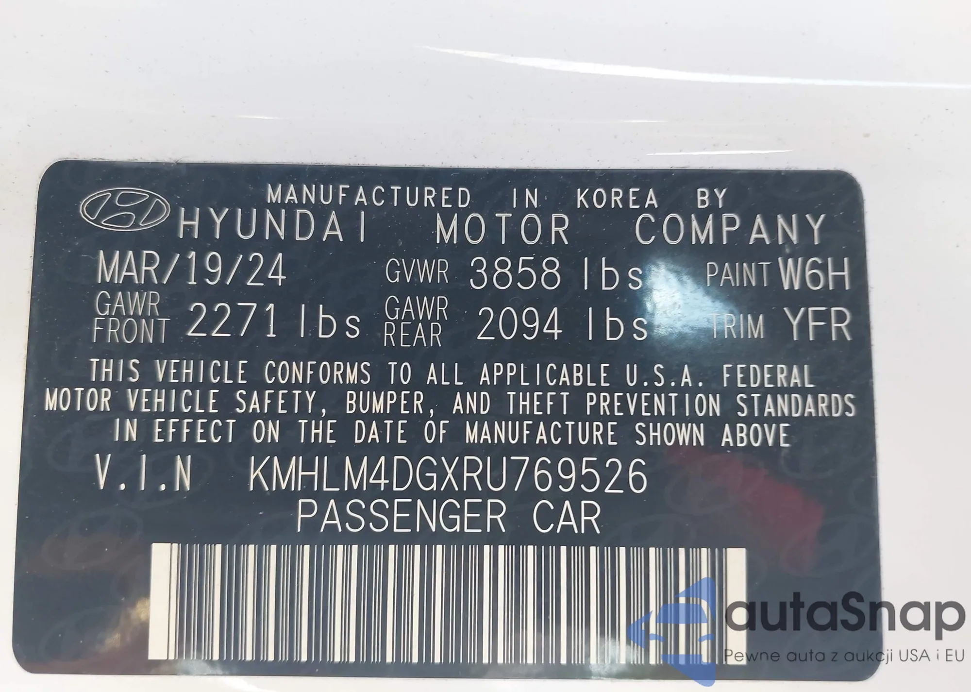LOT: 43704852 VIN: KMHLM4DGXRU769526