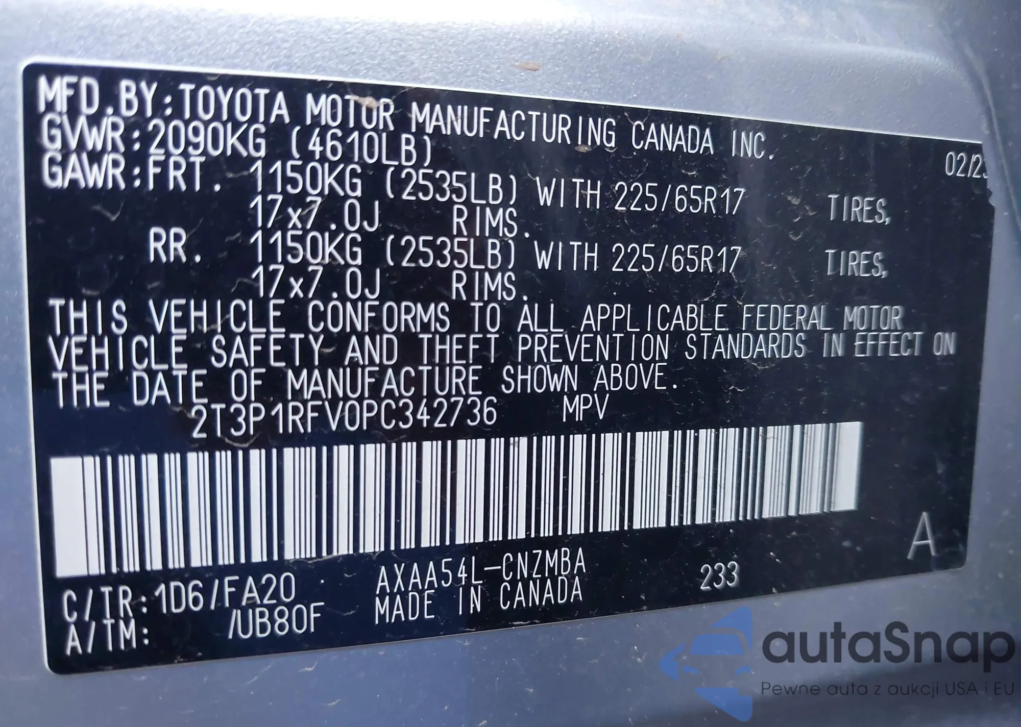 • VIN 2T3P1RFV0PC342736