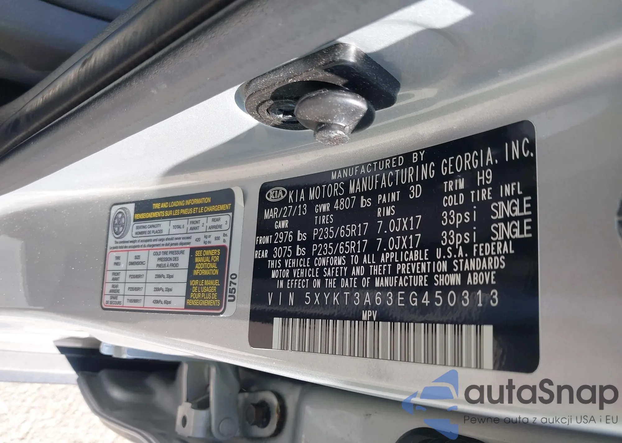• VIN 5XYKT3A63EG450313