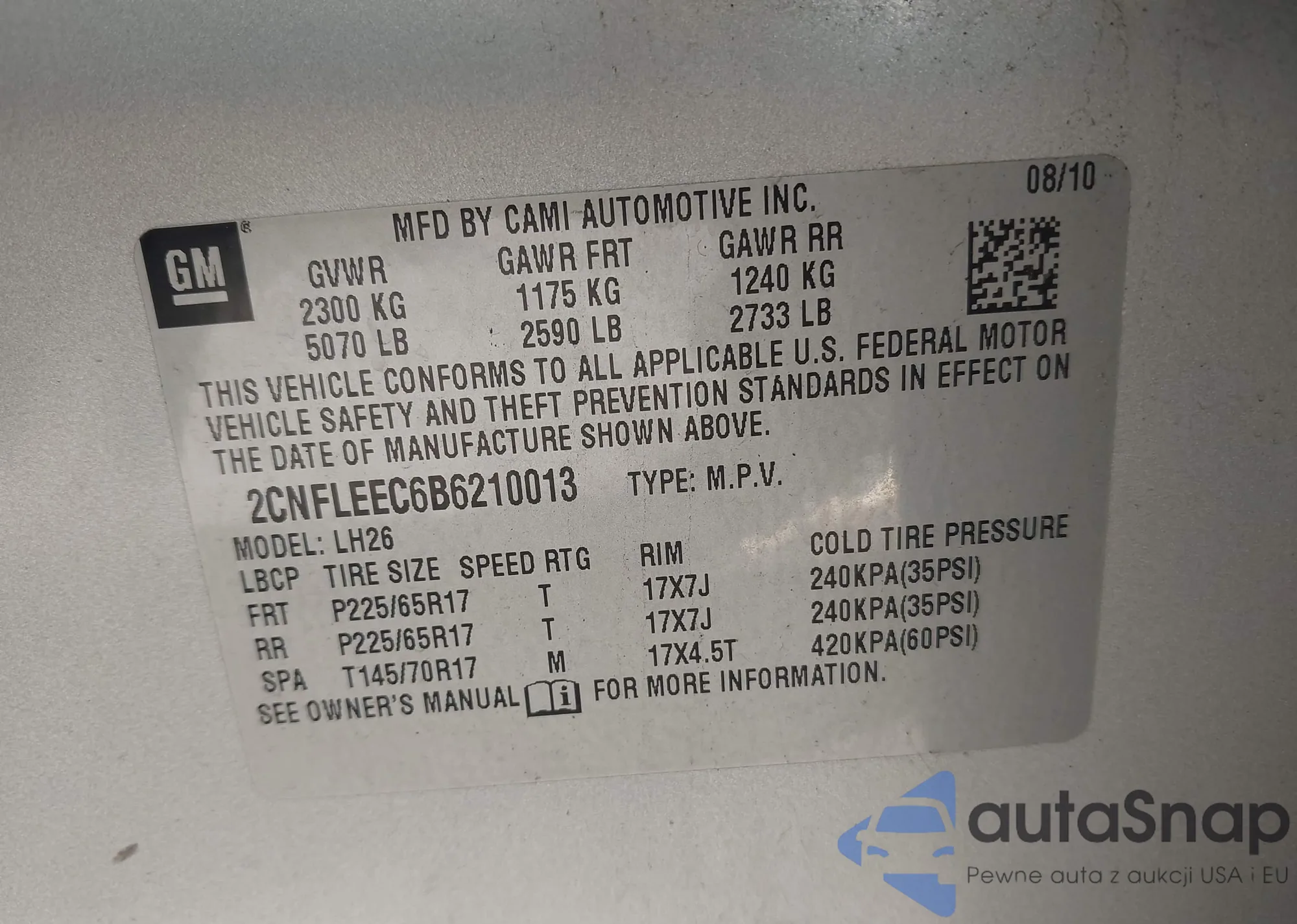 LOT: 43478342 VIN: 1GEEH96Y77U550323