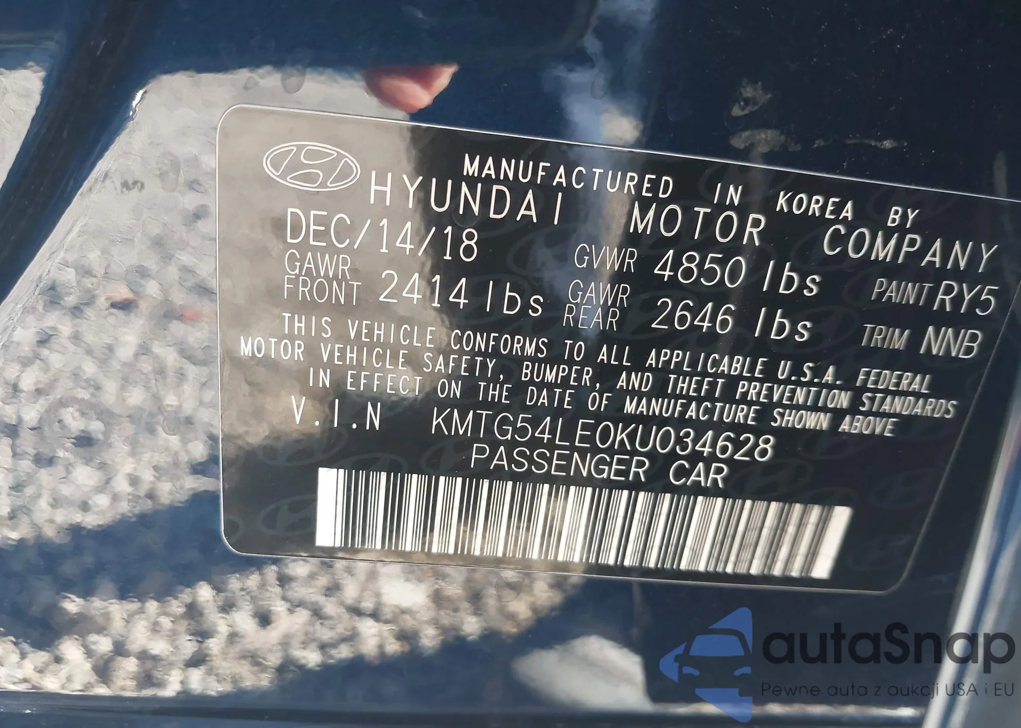 LOT: 43414057 VIN: KMTG54LE0KU034628