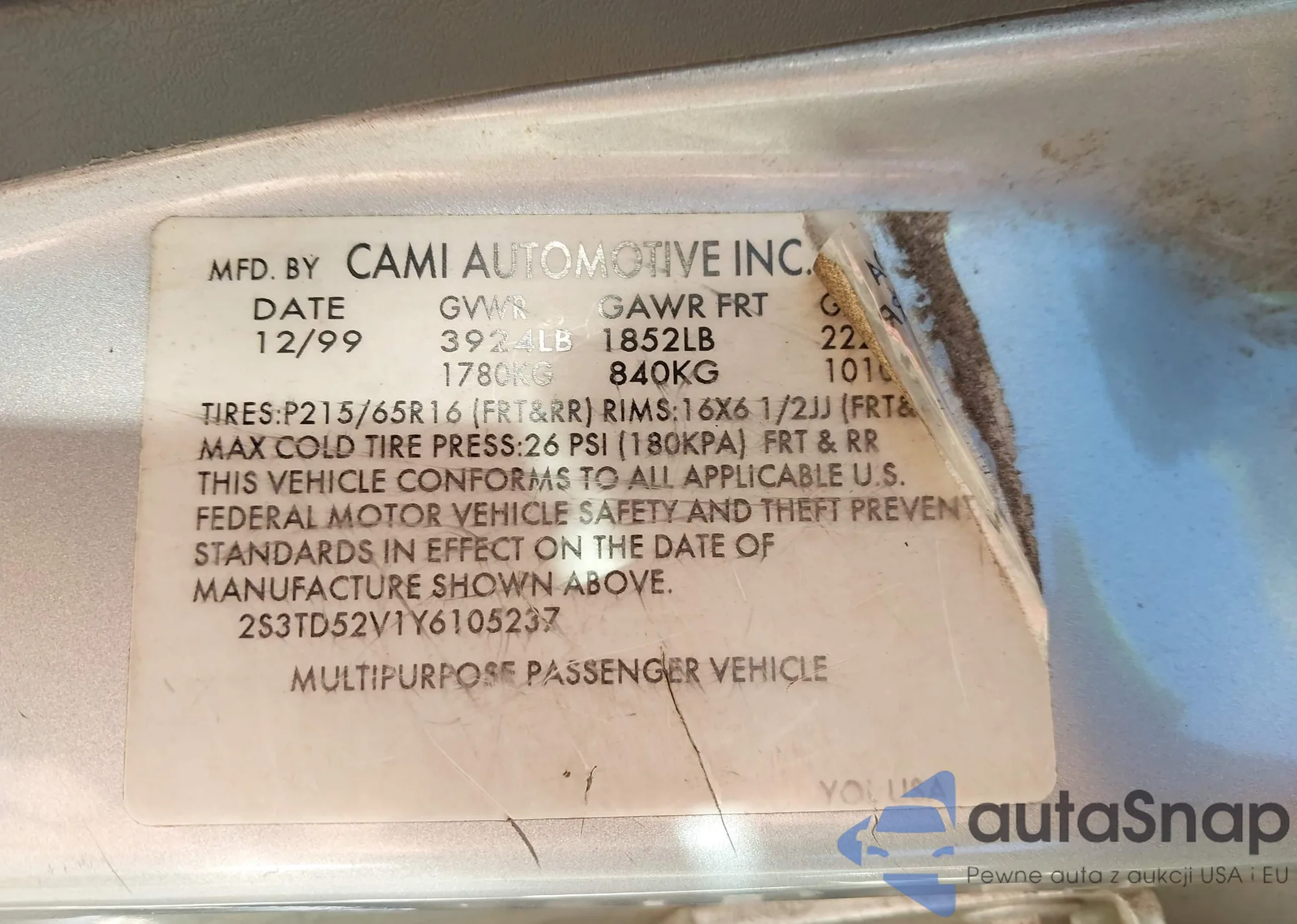 • VIN 2S3TD52V1Y6105237