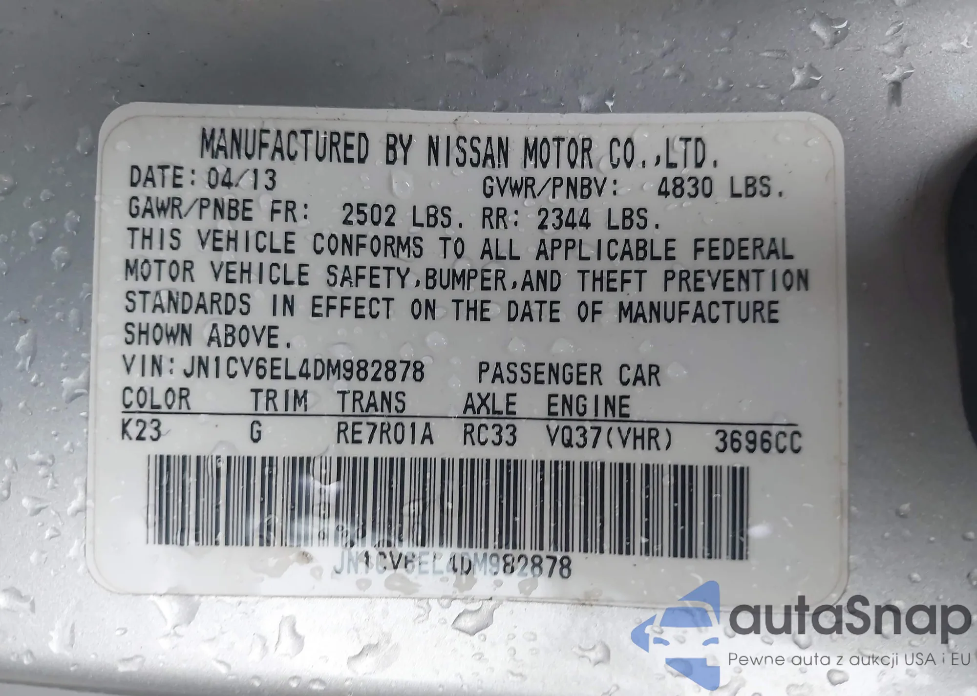 LOT: 42230249 VIN: 5NPDH4AE7DH332991