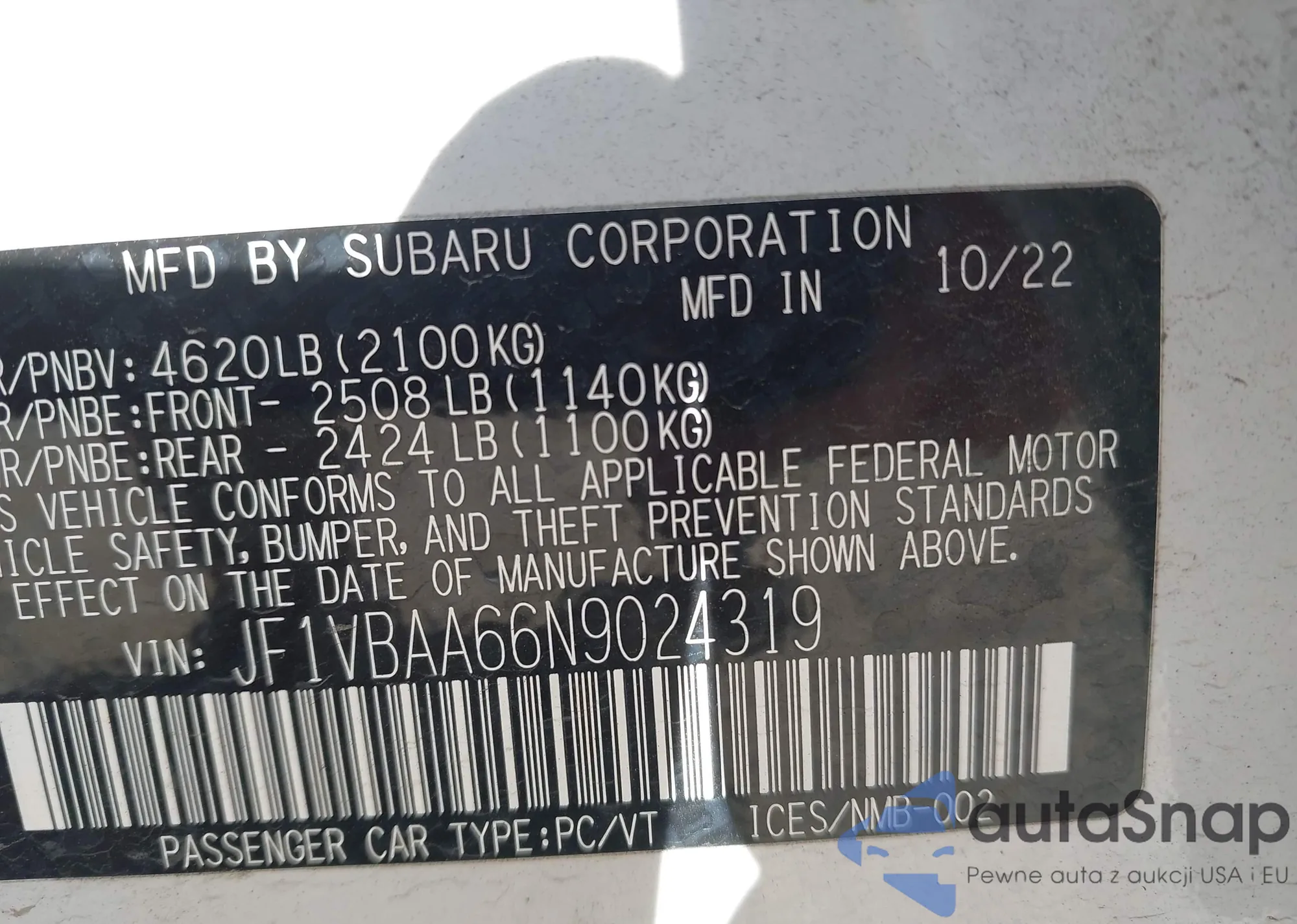 LOT: 43069994 VIN: JF1VBAA66N9024319