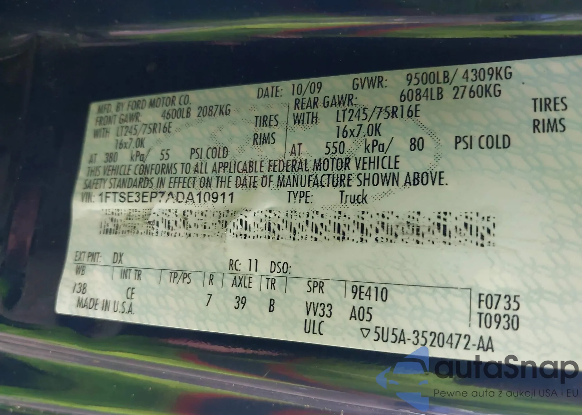 • VIN 1FTSE3EP7ADA10911