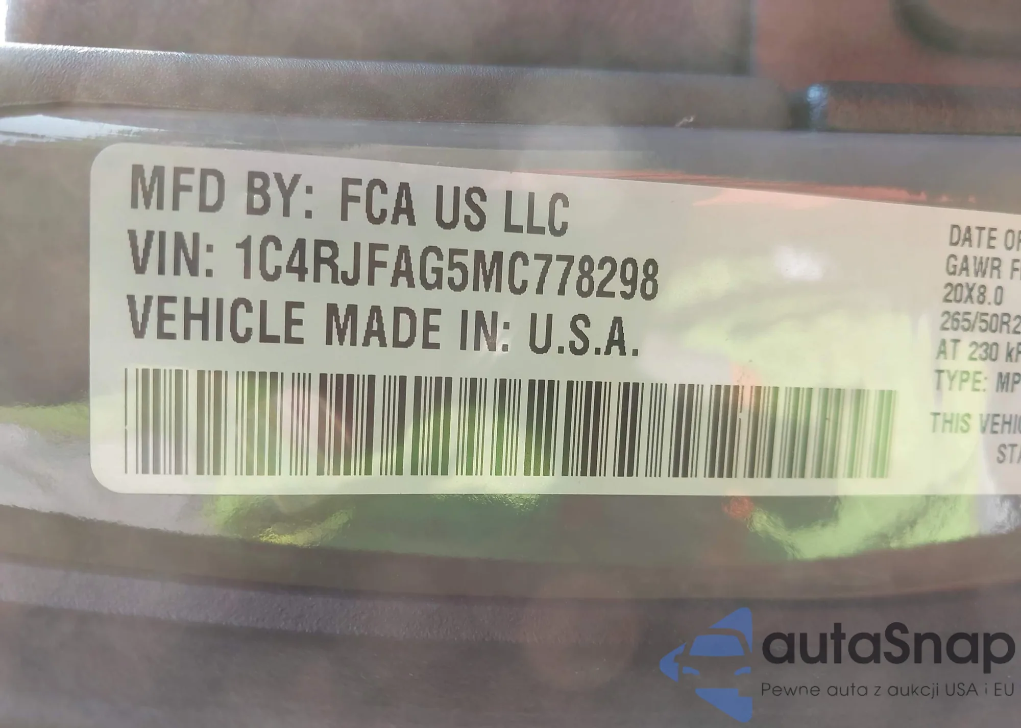 • VIN 1C4RJGAG5RC707888
