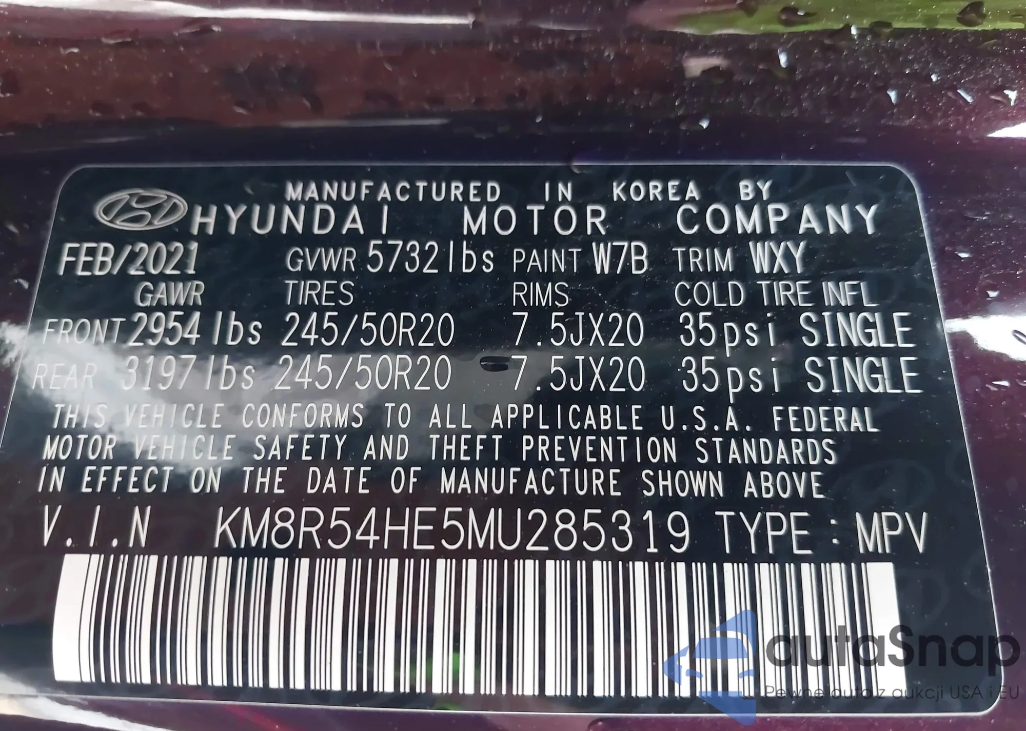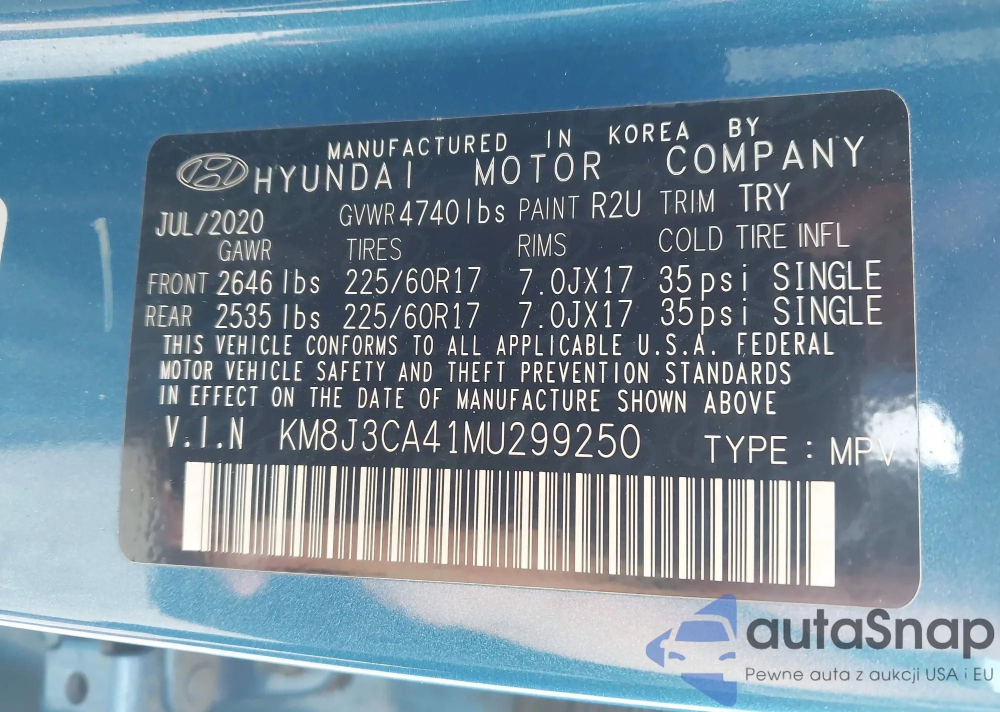 • VIN KM8HBCAB7RU114965