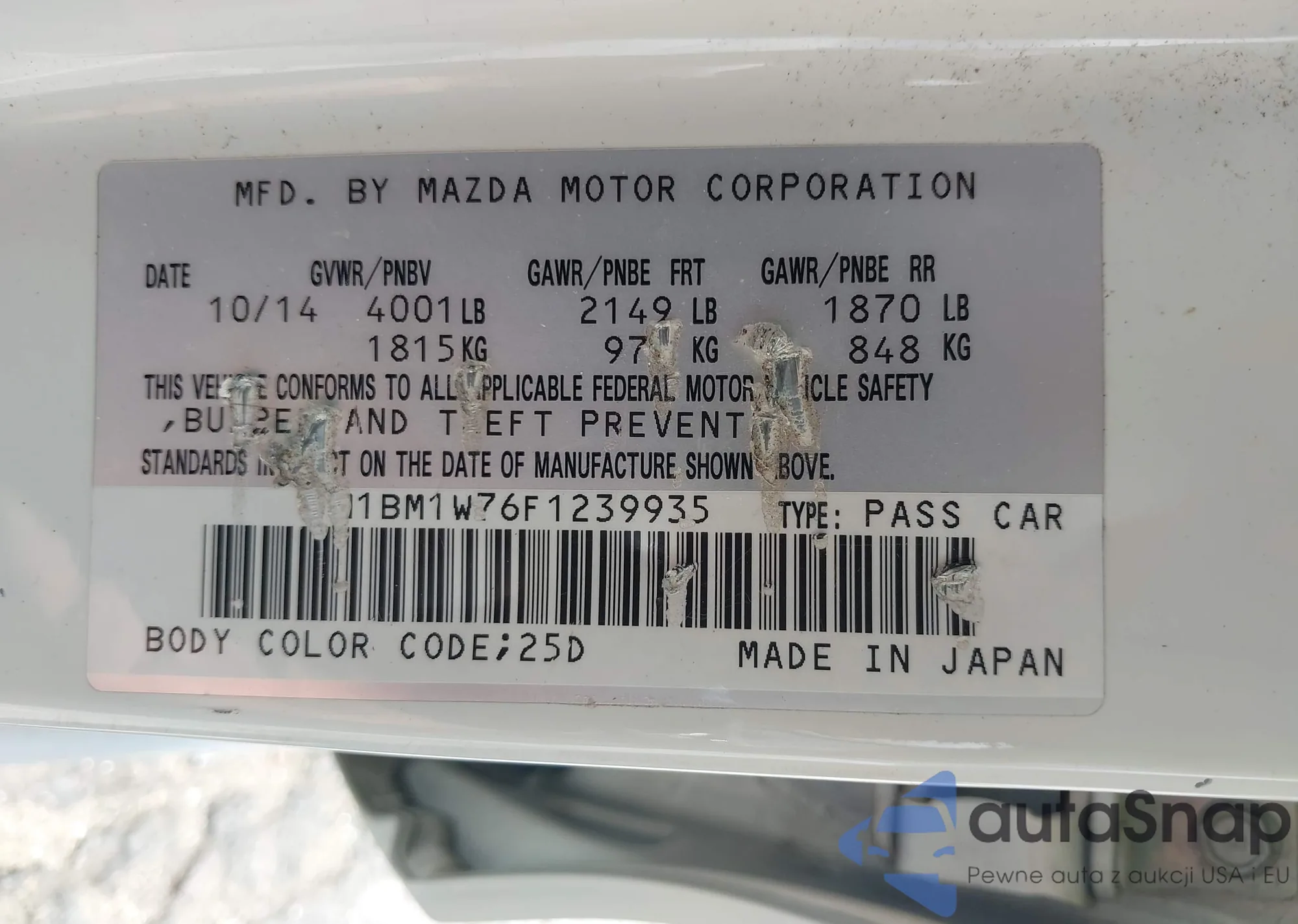 LOT: 43277900 VIN: JM1BM1W76F1239935