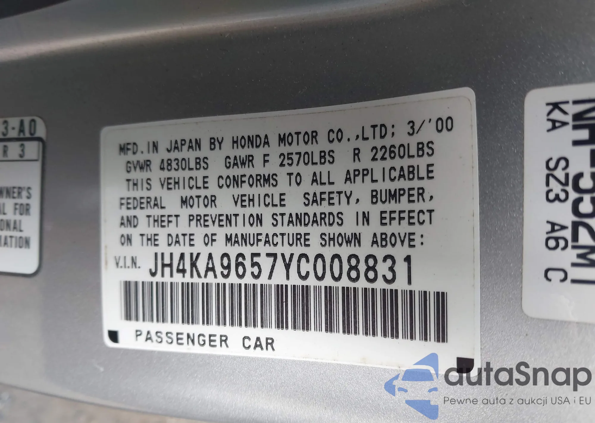 • VIN JH4KA9657YC008831