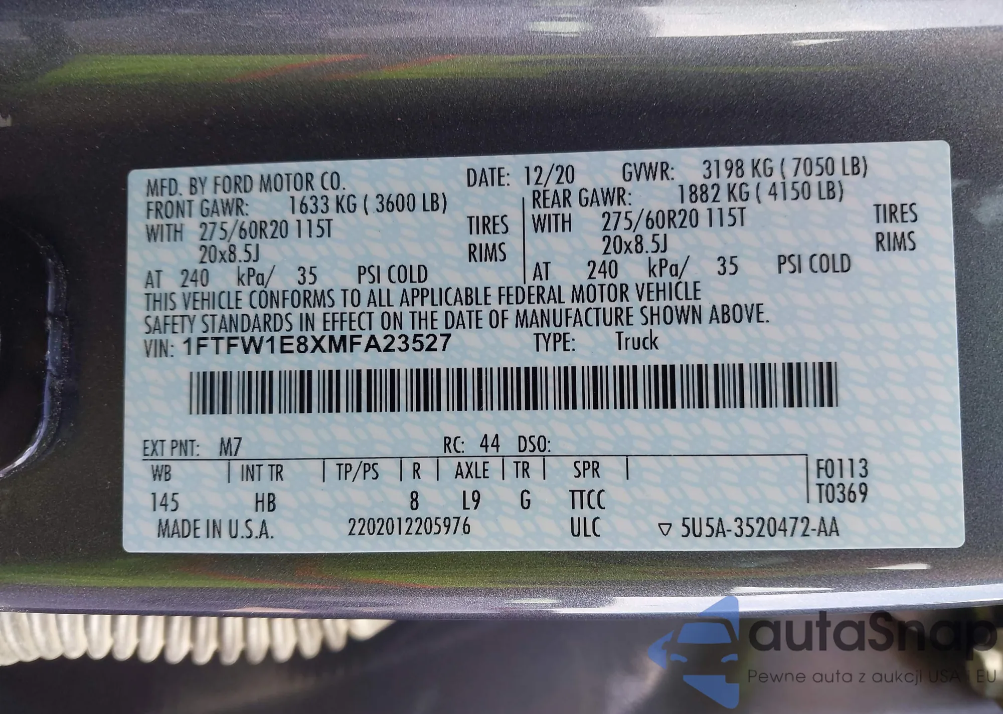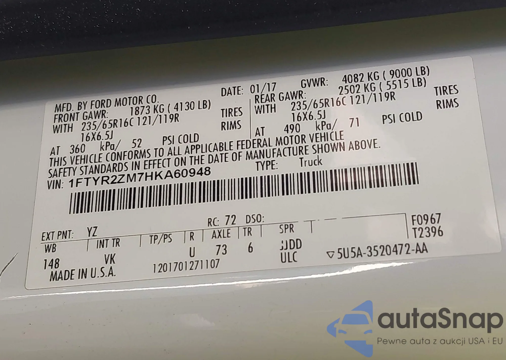 • VIN 1FTYR2ZM7HKA60948