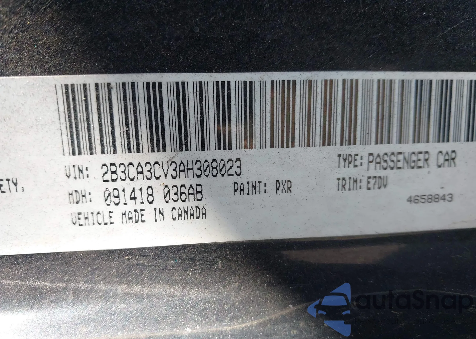 • VIN 2B3CA3CV3AH308023