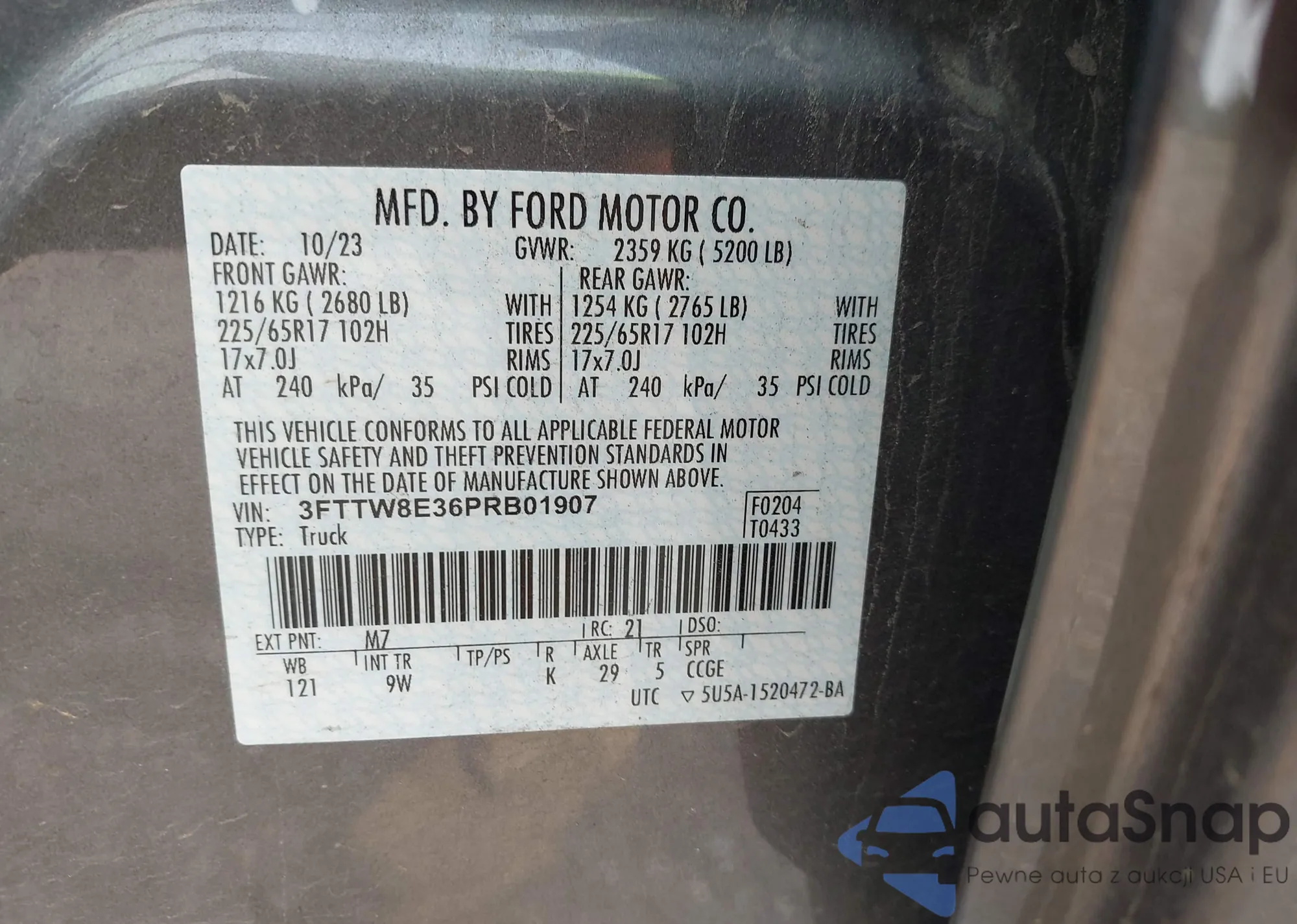 LOT: 43082919 VIN: 3FTTW8E36PRB01907