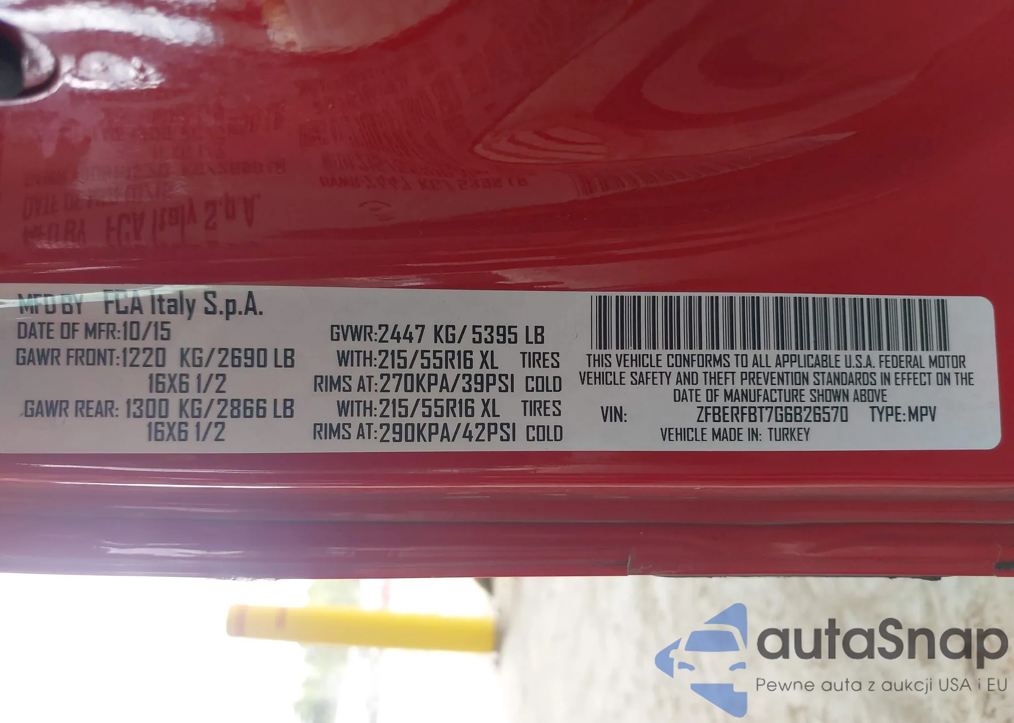 LOT: 43210691 VIN: ZFBERFBT7G6B26570