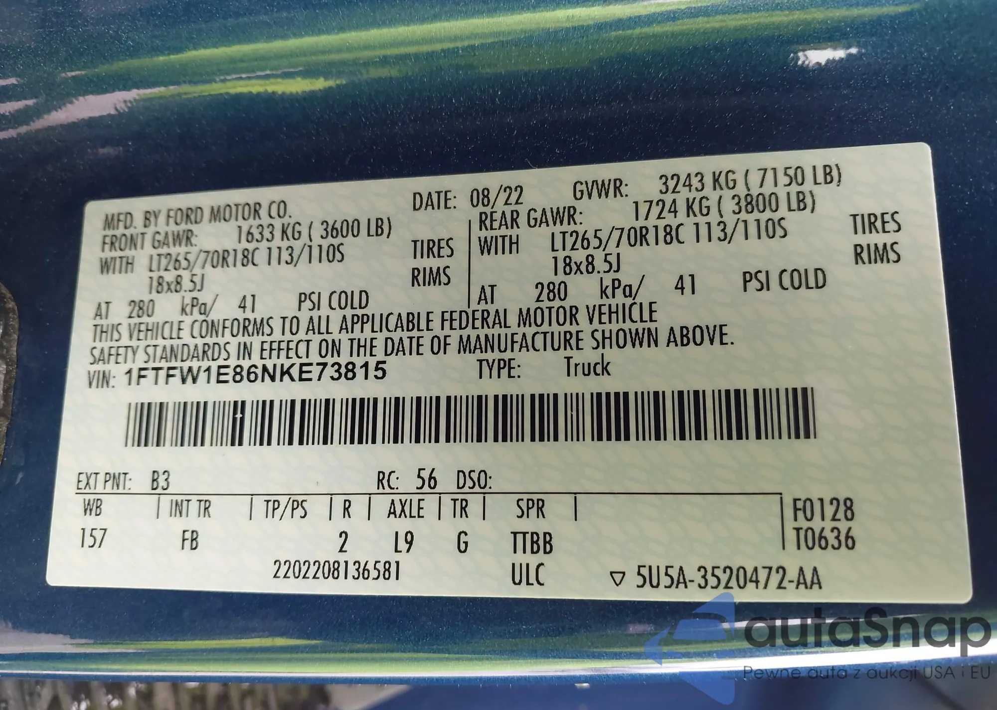 • VIN 1FTFW1E86NKE73815