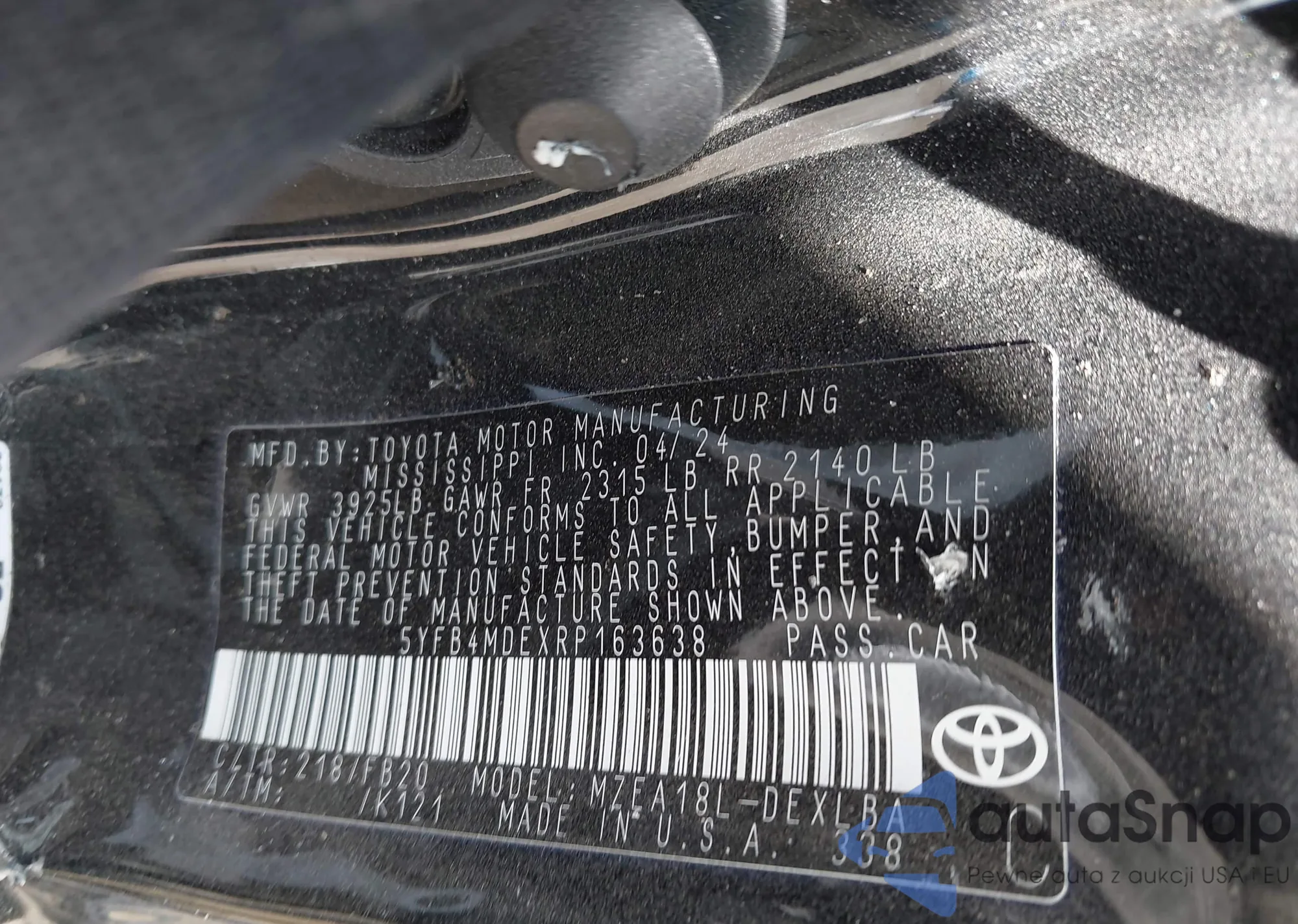 • VIN 5YFB4MDEXRP163638