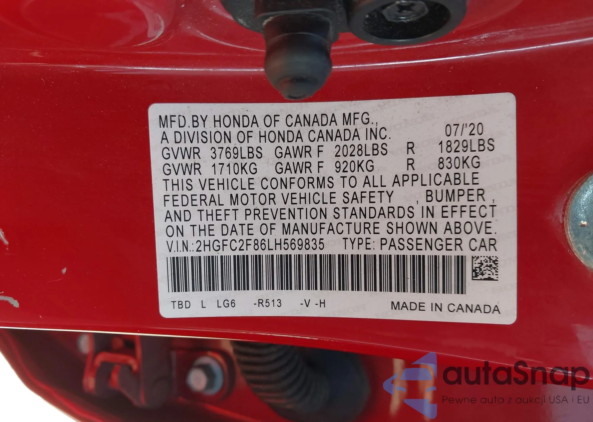 • VIN 2HGFC2F86LH569835