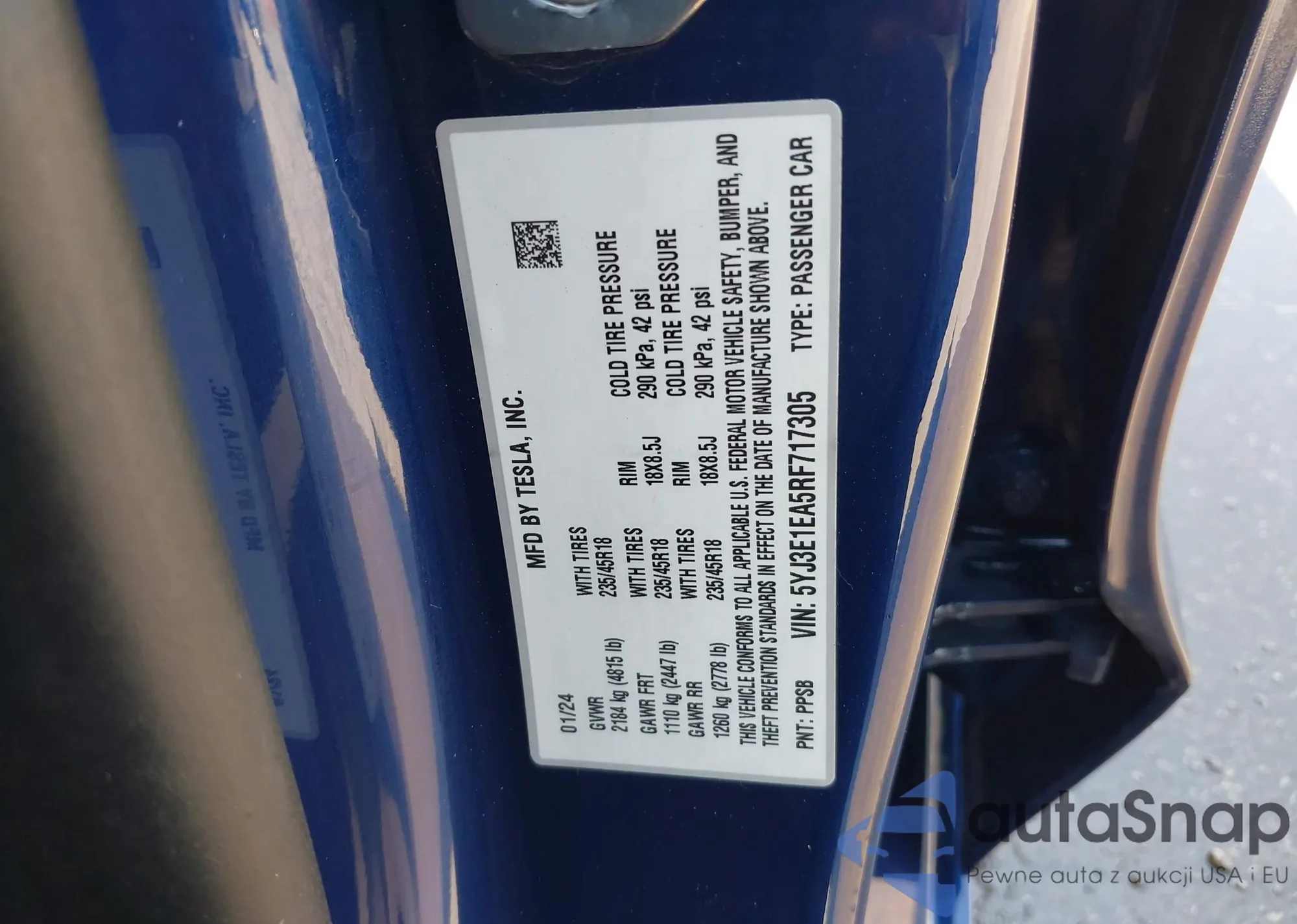 • VIN 5YJ3E1EA5RF717305