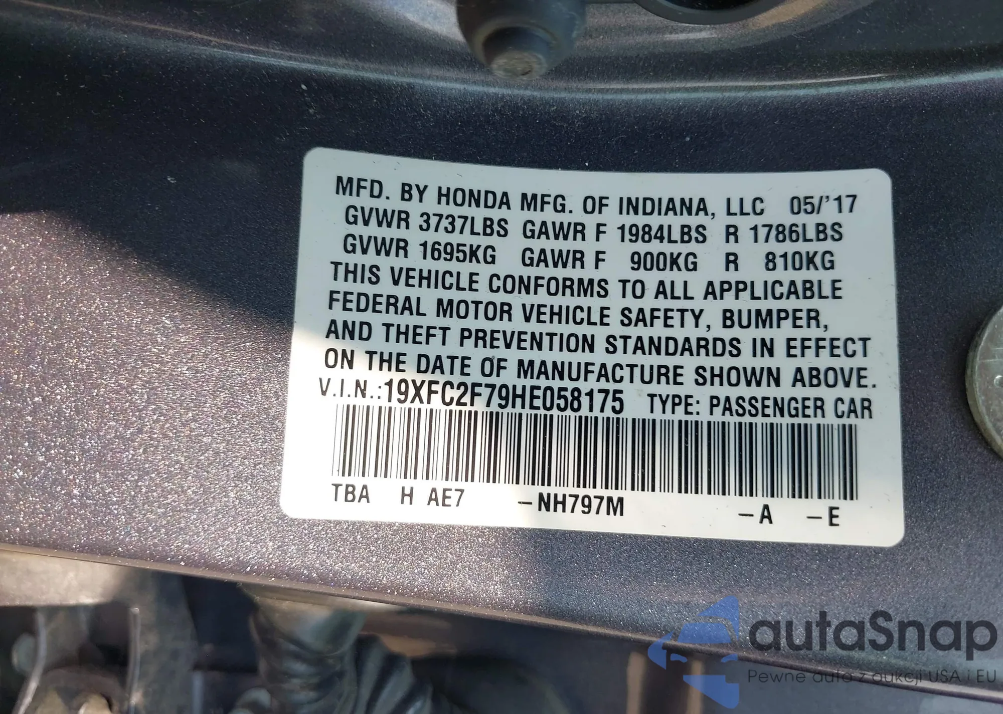 • VIN 19XFC2F79HE058175