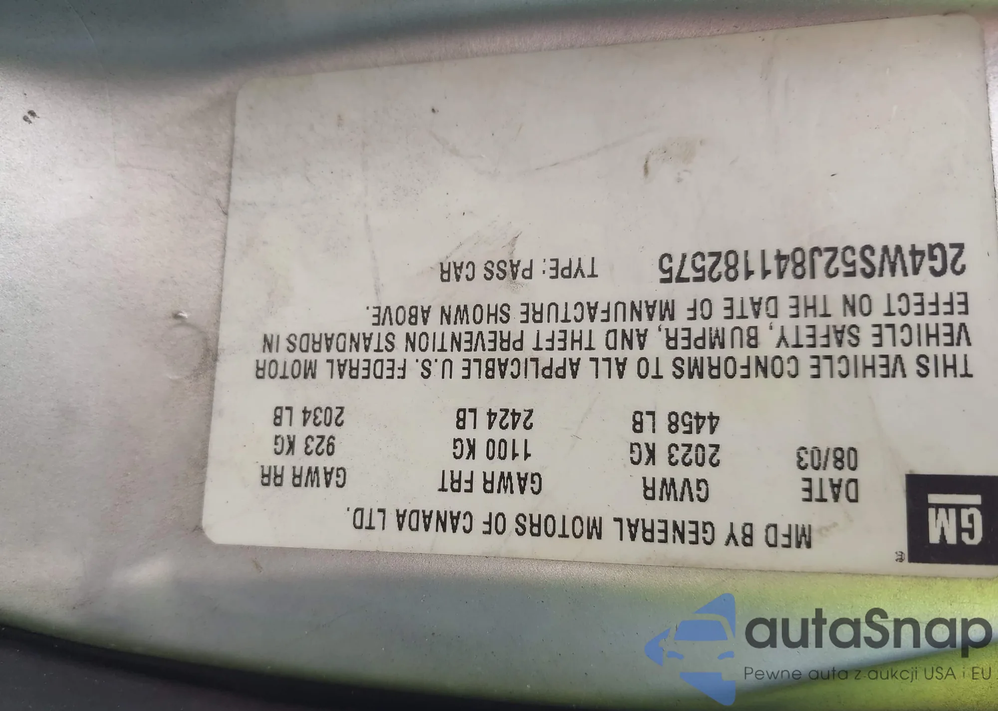 LOT: 43709432 VIN: 2G4WS52J841182575